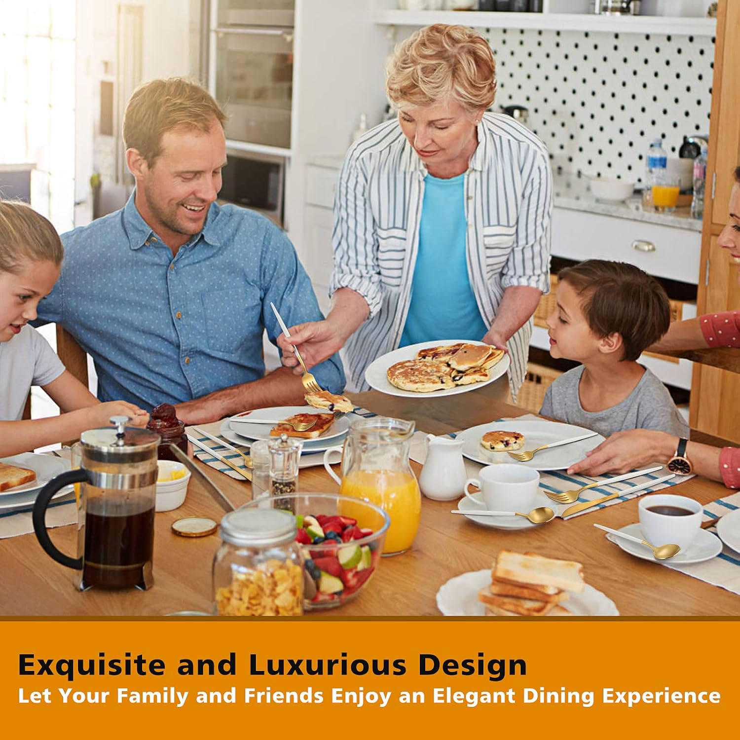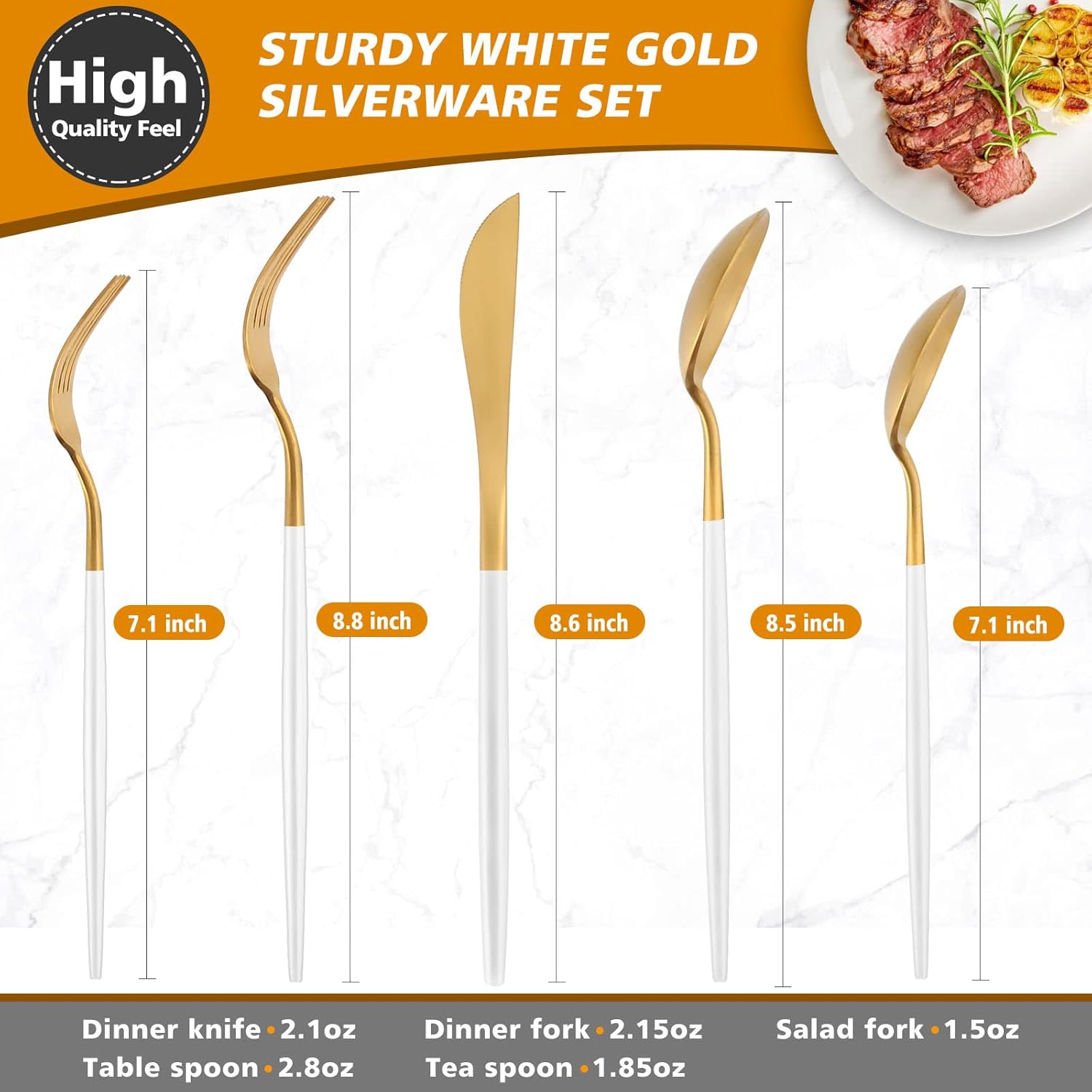 • DISHWASHER SAFE :This white gold silverware is easy to clean and dishwasher safe.Your good care can make the knives,forks and spoons silverware still look as same as new