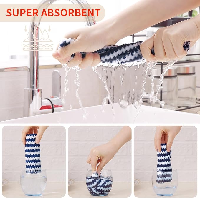 • Super Soft and Absorbent: Experience the luxurious softness of our dish towels. They are crafted with high-quality materials which feels soft and won't scratch your hands or any surfaces. Strong water absorption, easily absorb liquid and overflow, make the surface clean and dry.