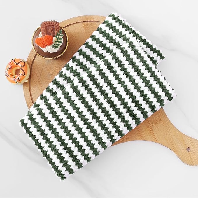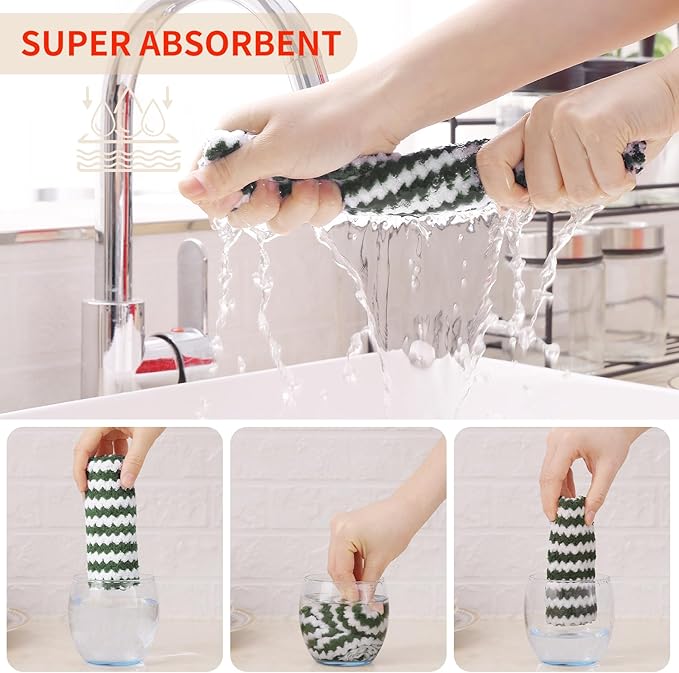 Homaxy Kitchen Towels(12 Pack, 10 x 20 inches), Ultra Soft and Absorbent Dish Towels, Reusable Fast Drying Microfiber Cleaning Cloth, Coral Velvet Wave Design No-lint, Grass Green