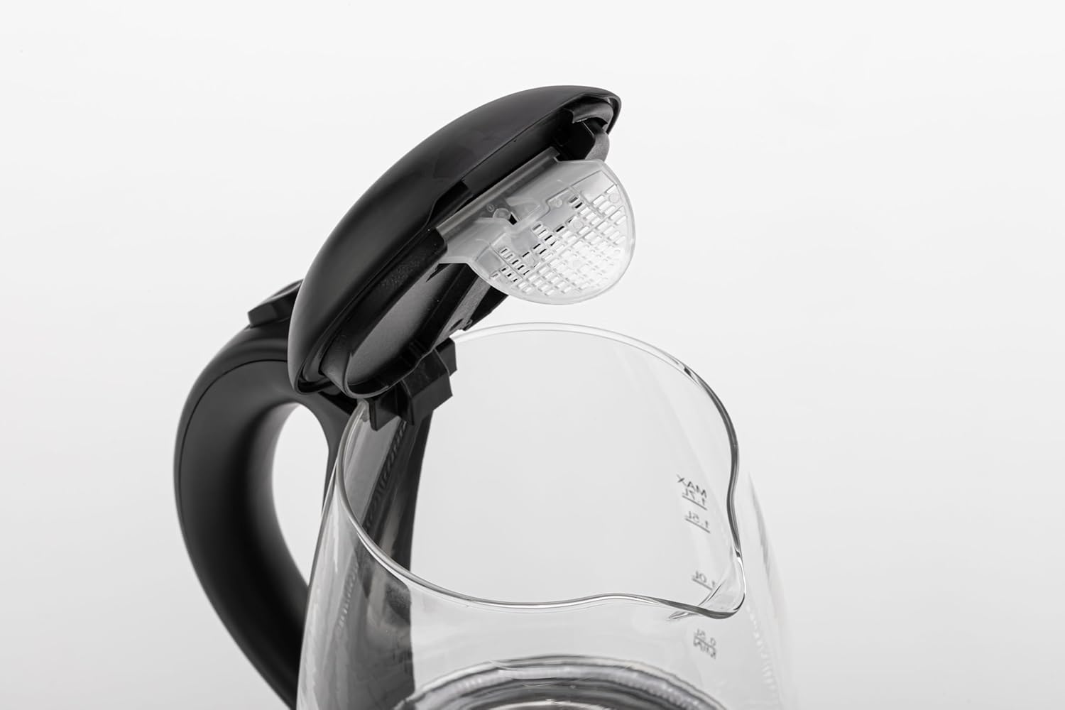 Glass Kettle (Black) for Boiling Water, Hot Water Boiler, Wide Opening & Automatic Shut Off, Easy Clean Wide Opening,Coffee & Tea Kettle