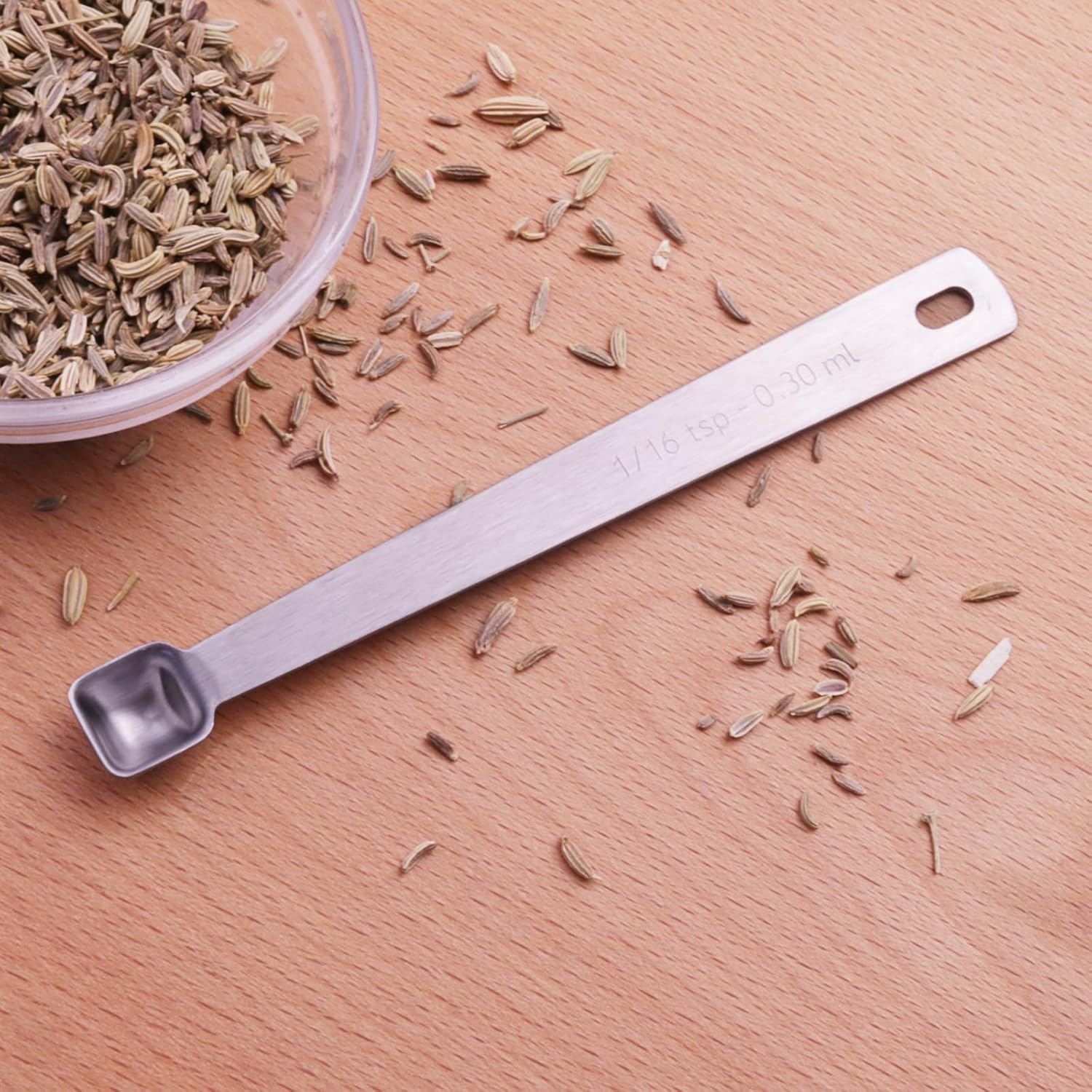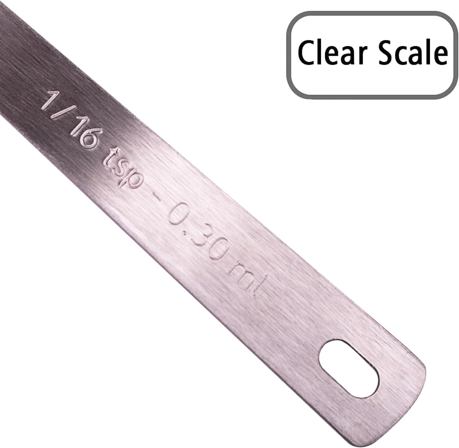 • 【Precise Scales】 The measuring spoon is so precise that it can be the perfect partner for your cooking. The teaspoon has a clear scale on the handle. ⬤1/16 Tsp | 0.3 ML