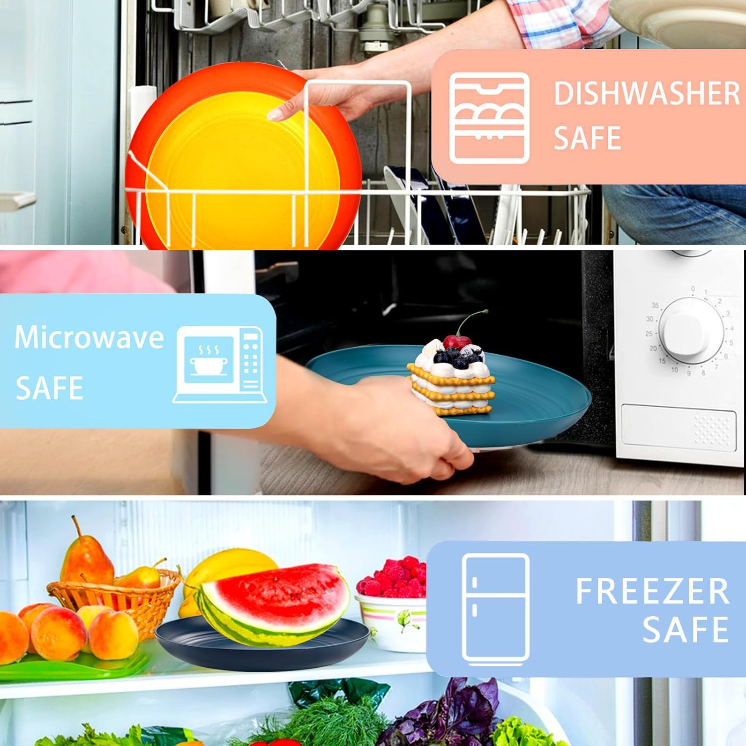 It depends on the product. Most stainless steel and silicone items are dishwasher safe, while some plastic products may not be suitable for microwave use. Check the “Usage Guide” in the description.