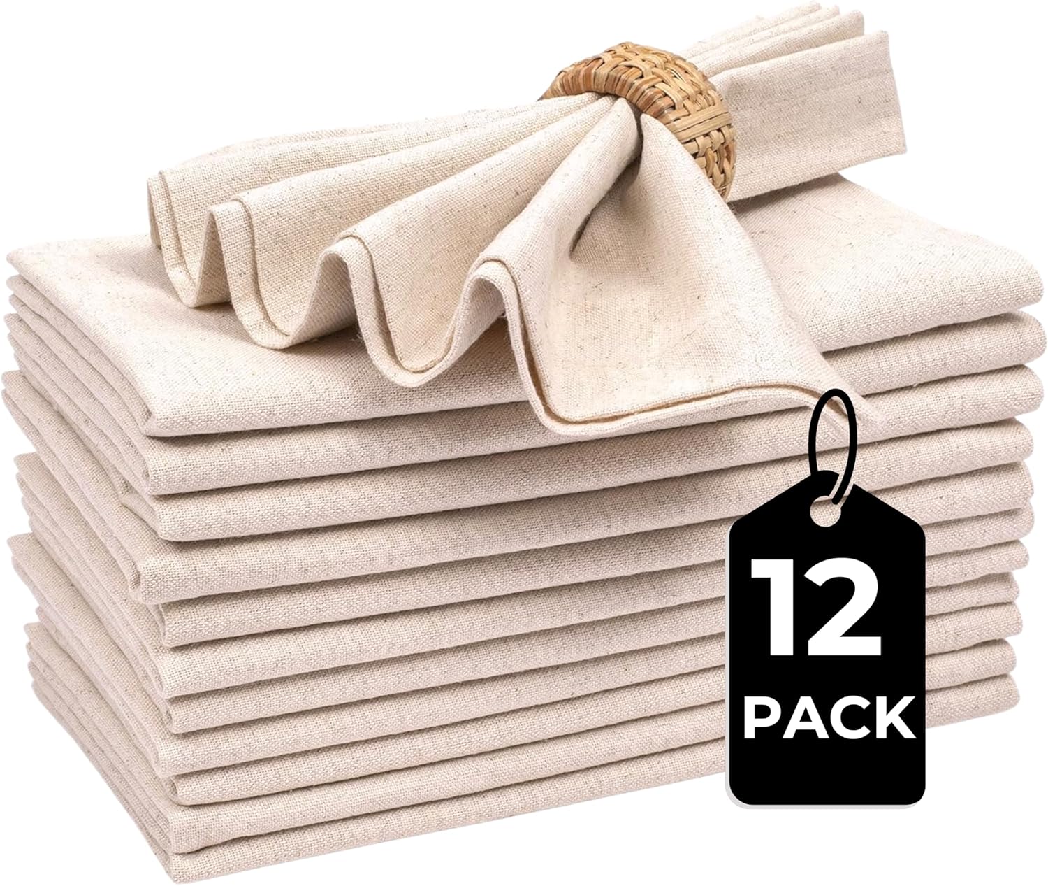 Flax Linen Cotton Cloth Napkins Set of 12-18x18 inch Dinner Napkins, Machine Washable, Soft & Durable for Home, Restaurants, Events - Natural Color