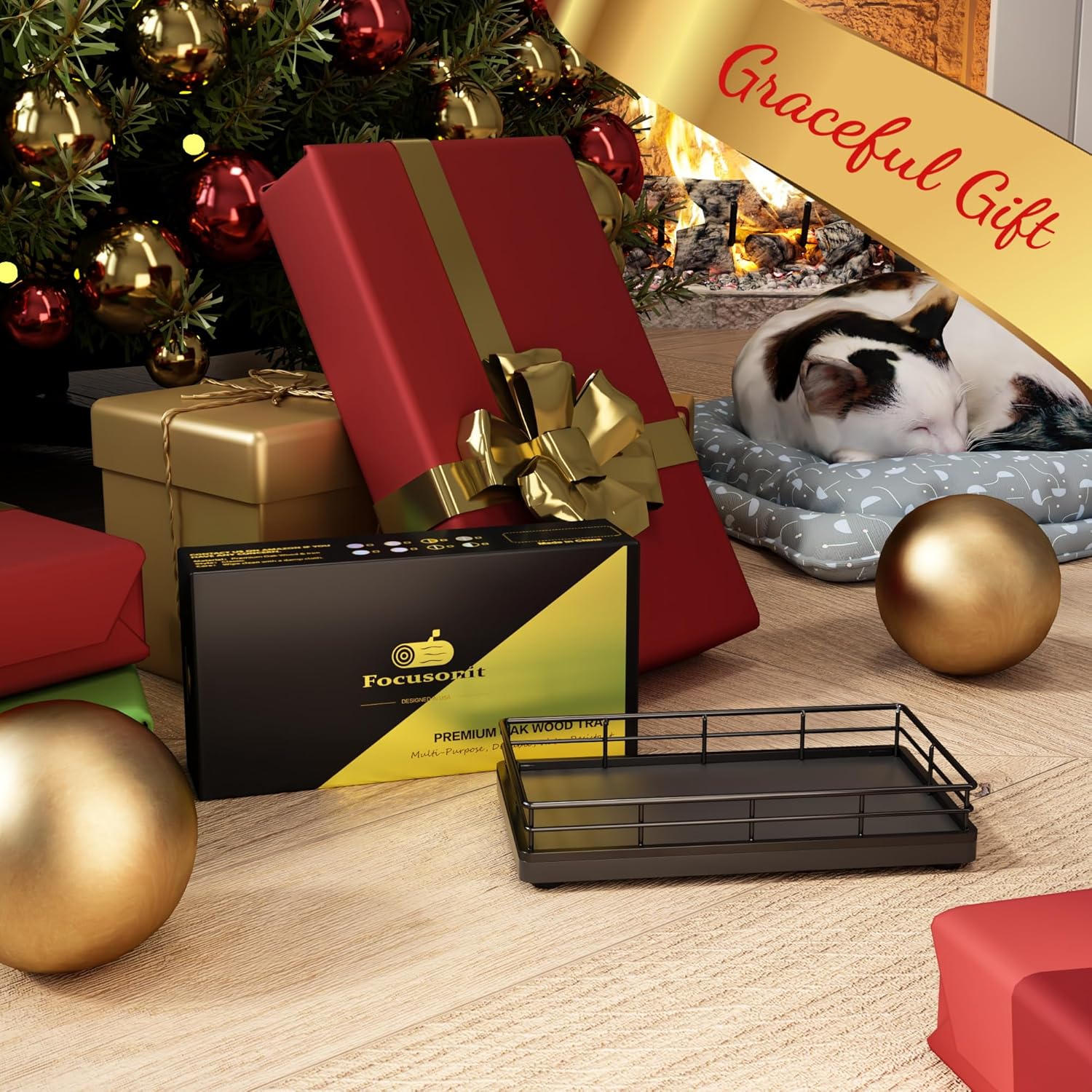 • Unique Charm: Elevate your space with a unique appearance featuring a combination of iron mesh edges and solid oak base; Oak's distinctive and captivating grain pattern adds natural beauty, giving an exquisite touch of elegance and sophistication; This fusion blends modern minimalism with rustic charm seamlessly; This wood rectangle tray is crafted from high-quality oak, which ensures durability and increased load-bearing capacity