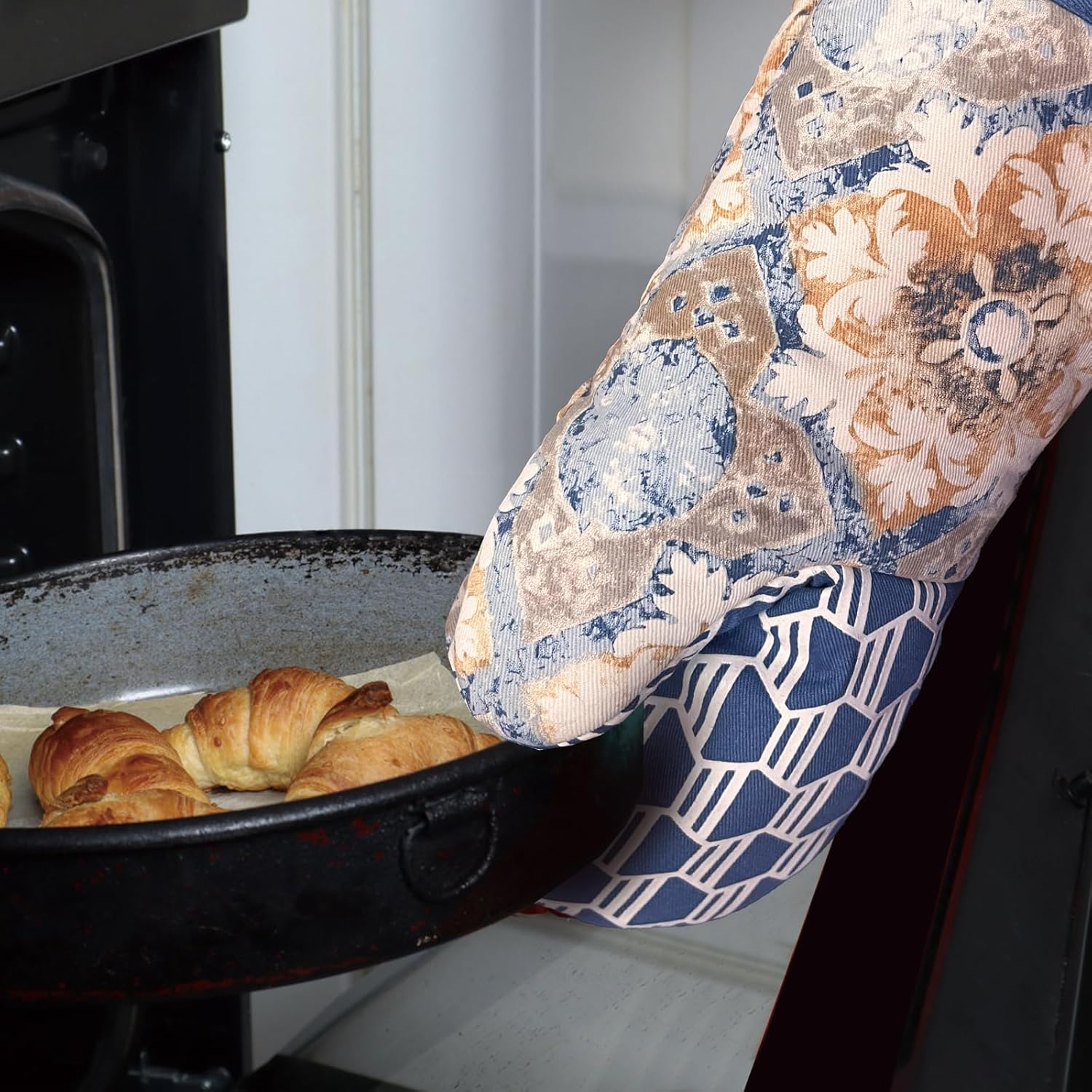 • 3. CUTE & FUNCTIONAL: The oven mitts with fashion patten is cute and add some fun to our kitchen decor. hanging loop, features a convenient for displaying or storing, save your room and make your kitchen look more cleaner.