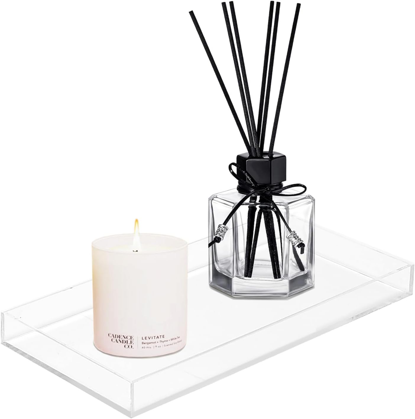 ROYALITA Acrylic Tray Bathroom Tray for Countertop, Guest Towel Holder Tray for Napkin Perfume Jewelry Makeup, Vanity Trays for Soap Dispenser, Aromatherapy, Cup & Candle, Clear