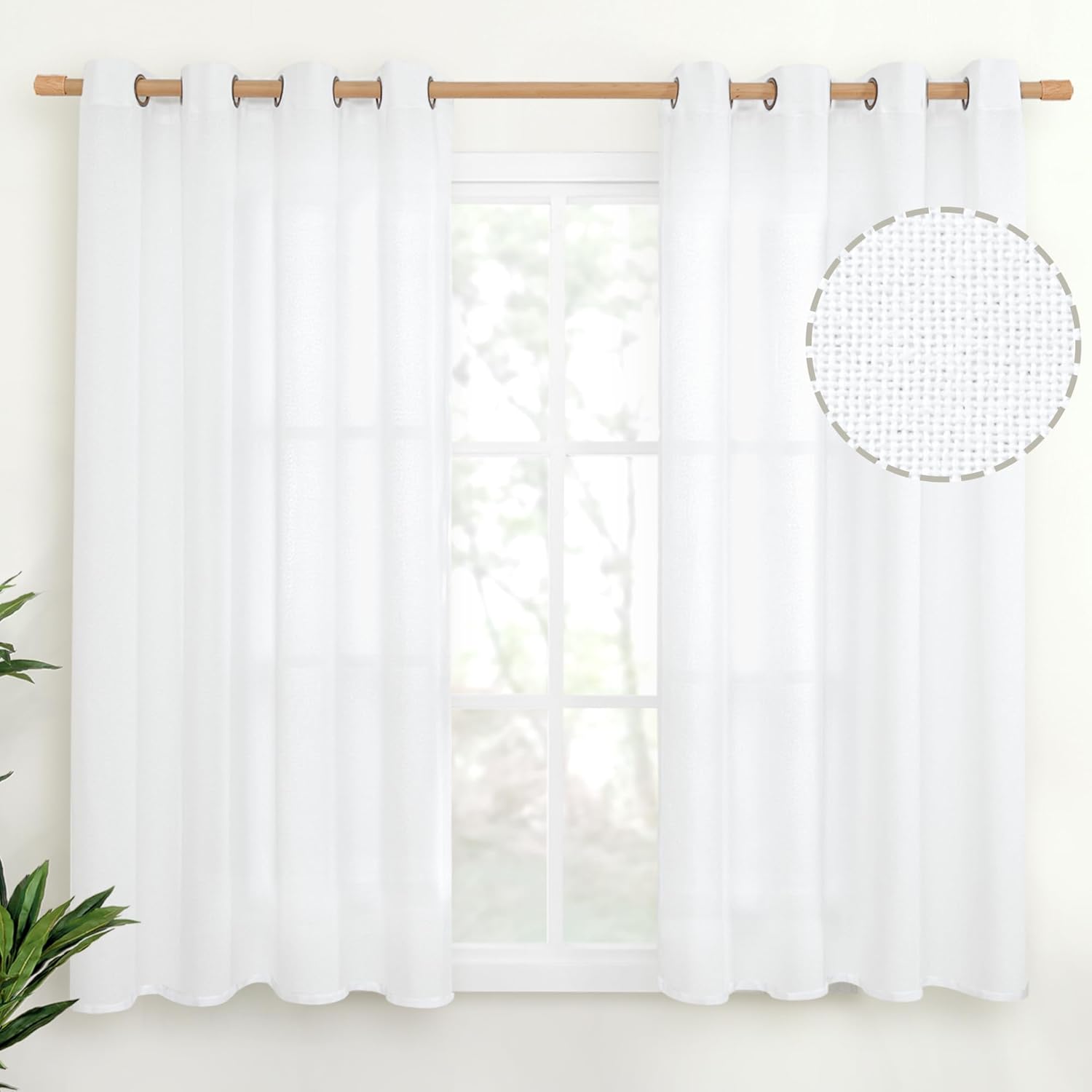 YoungsTex White Linen Curtains 54 Inches Long for Short Windows, Bronze Gromme Light Filtering Drapes for Bedroom Bathroom Kitchen Lightweight, 2 Panels, 52 X 54 Inch