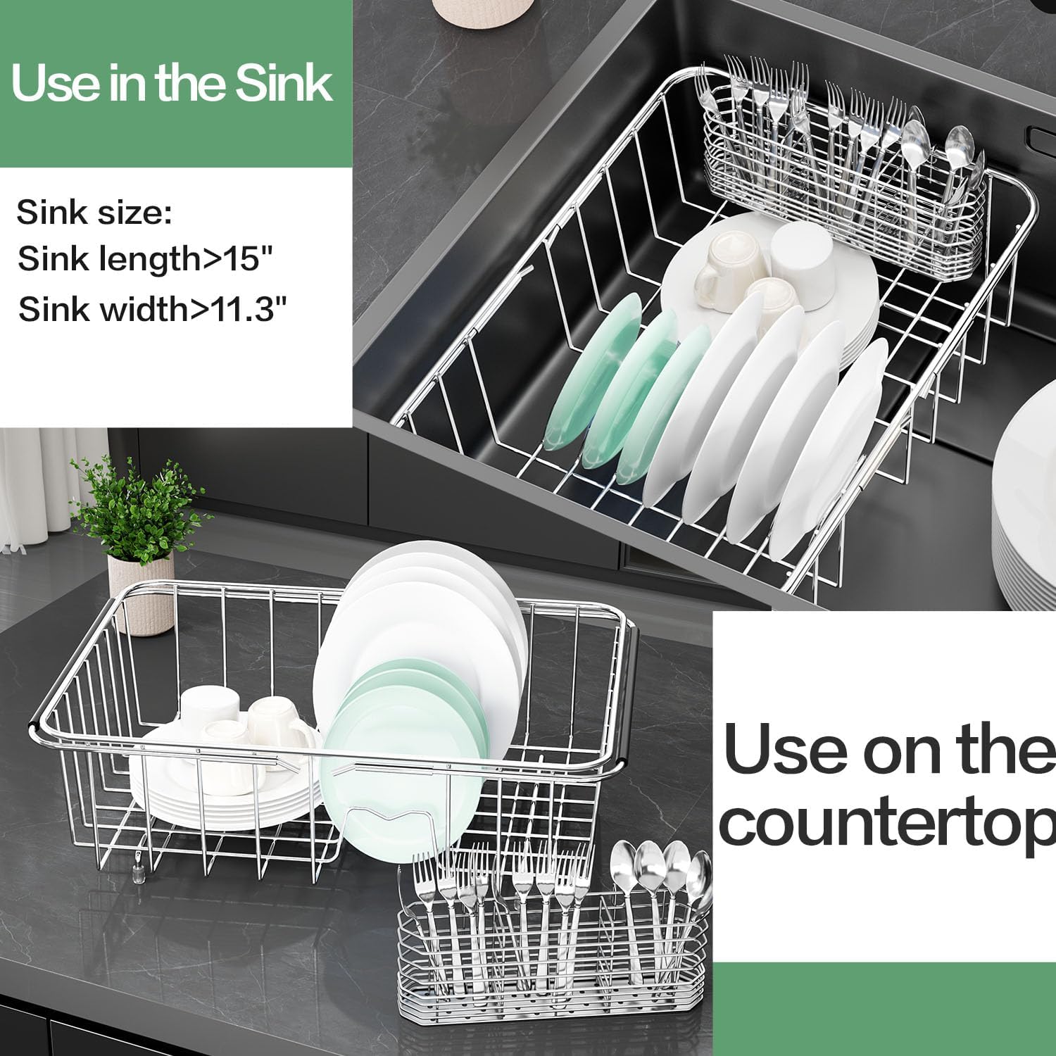 • 【Please measure the sink size before purchasing】: Used over sink:Sink length between 15''and 22.9'', Width greater than 11.3''. Used in sink: Sink length greater than15'', width greater than 11.3''