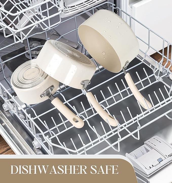 • [Super Easy to Clean] - Our excellent non-stick saucepans simplify your cleaning process with their superior performance. Just a quick rinse with soapy water after use, and the sauce pan sets look like new.