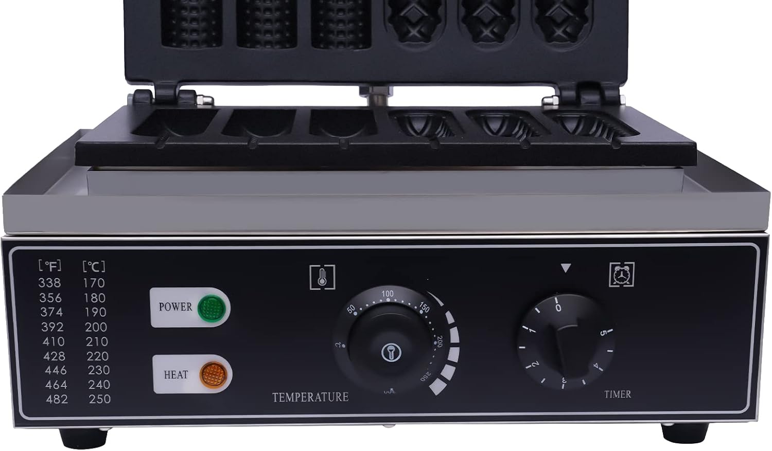 110V Nonstick 2-Shape Commercial Electric 6pcs Hot Dog Maker Machine Waffle Baker Electric Waffle Maker Muffin Machine Corn Dog for Family Breakfast Gift 1500W