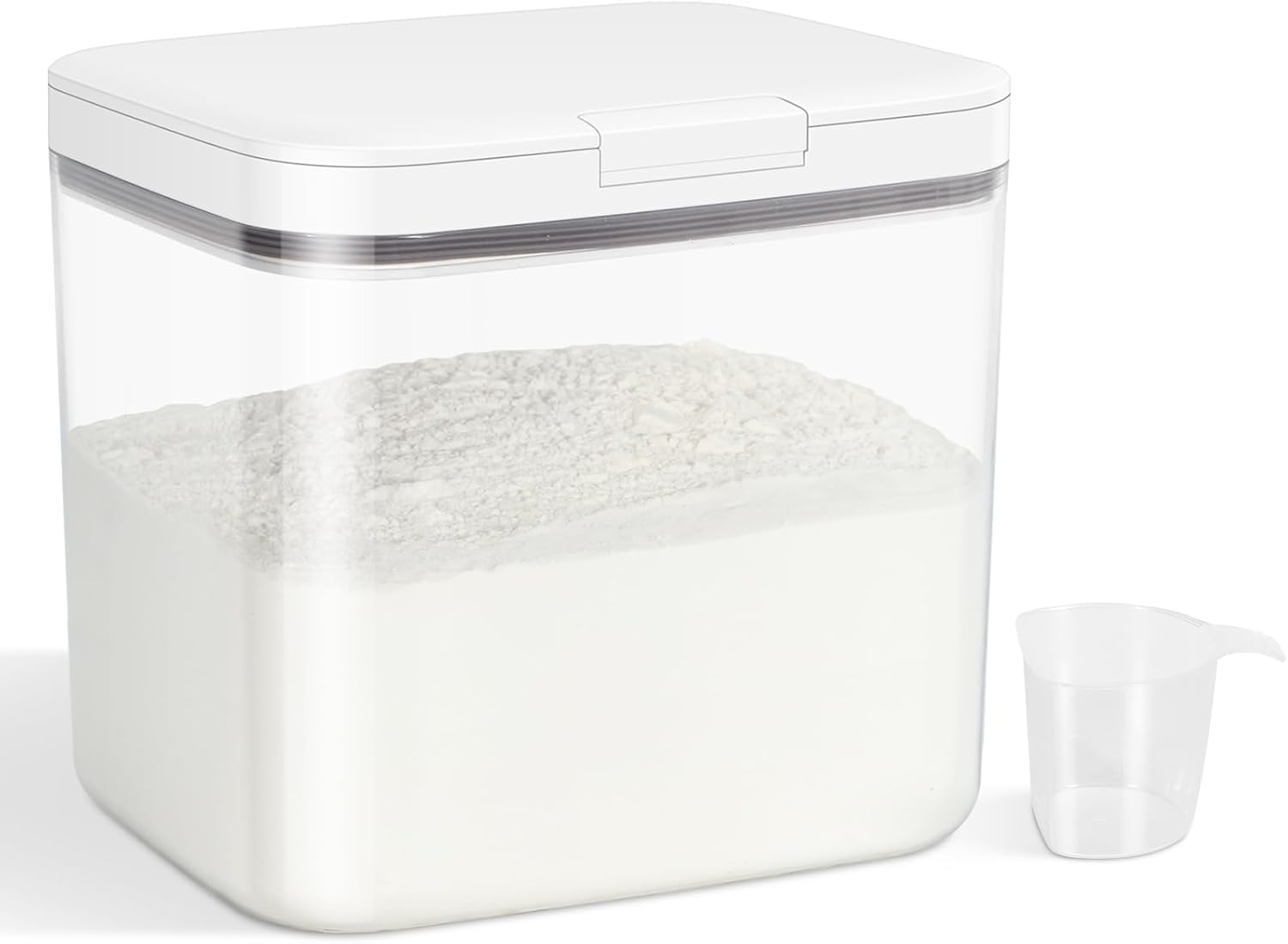 • INTEGRATED MEASURING CUP: The laundry powder container come with a measuring cup, ensuring easy food scooping. The lid with dual silicone gasket will keep out moisture or dust, always keeping the inside items super fresh and dry