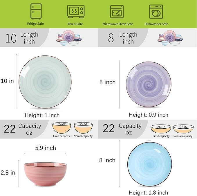 • SWIRL & SPRAY BLACK SPOTS DESIGN - The design of exquisite hand-painted gradient patterns paired with rich colors and black spots create a stylish, unique, and elegant set. This creative design will match well your delicious food and add colors to a simple table decor.