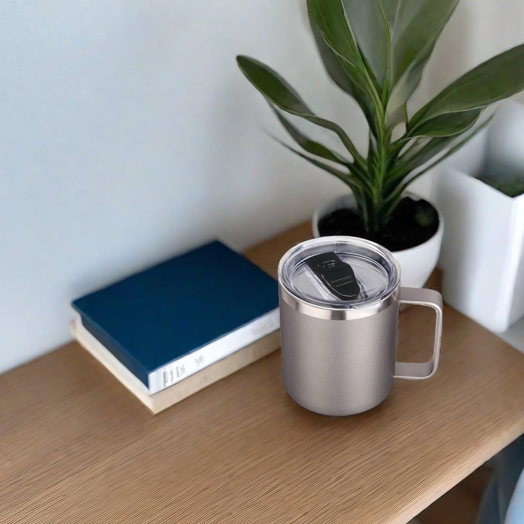 Volhoply 14oz Insulated Stainless Steel Coffee Mug with Lid Bulk 2 Pack,Double Wall Vacuum Travel Coffee Cup with Handle,Reusable Metal Cups Tumbler,Camping Mugs Keep Hot,Ideal Gifts(Gray,2 Set)