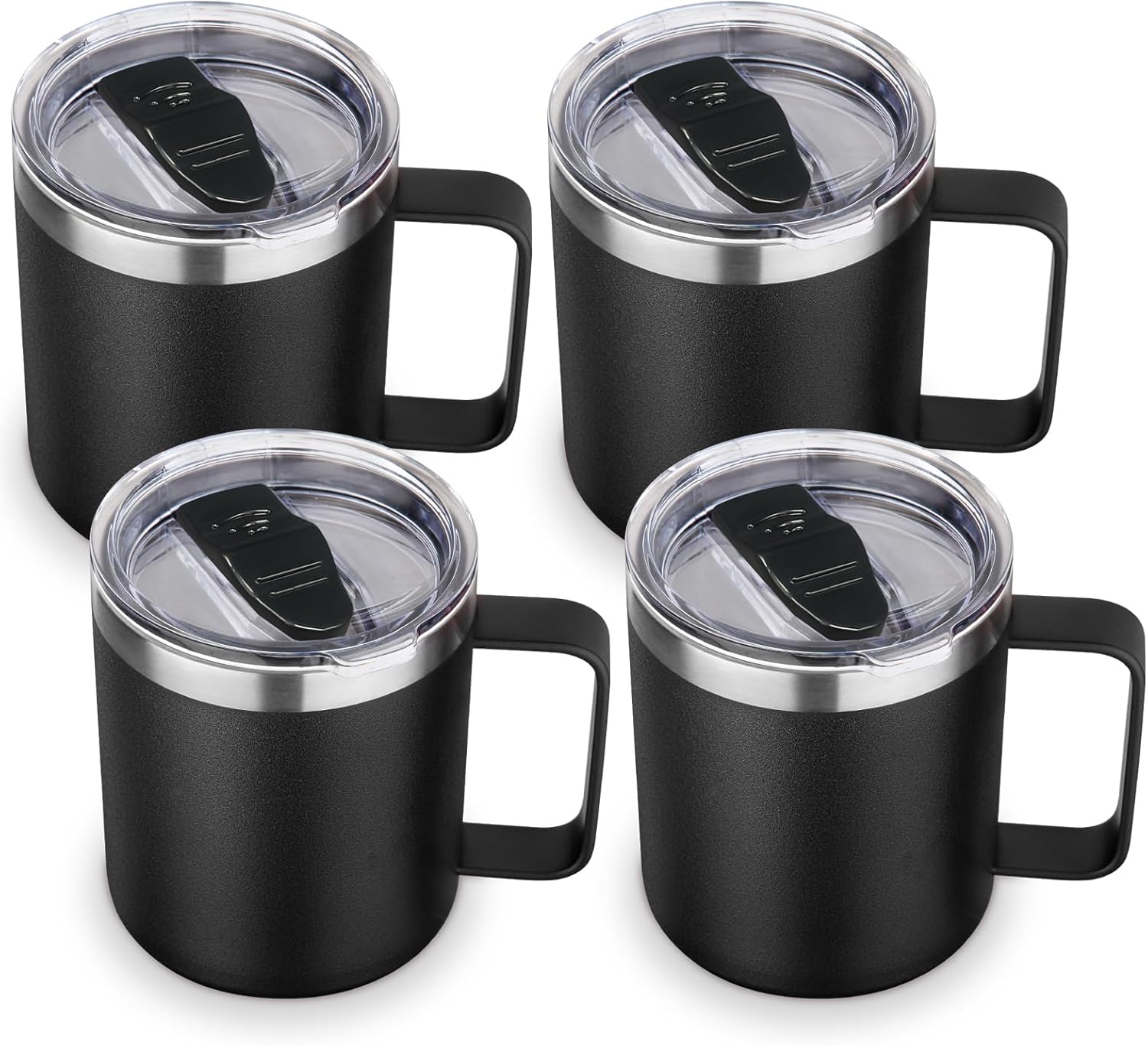 Volhoply 14oz Insulated Stainless Steel Coffee Mug with Lid Bulk 4 Pack,Double Wall Vacuum Travel Coffee Cup with Handle,Reusable Metal Cups Tumbler,Camping Mugs Keep Hot,Ideal Gifts(Black,4)