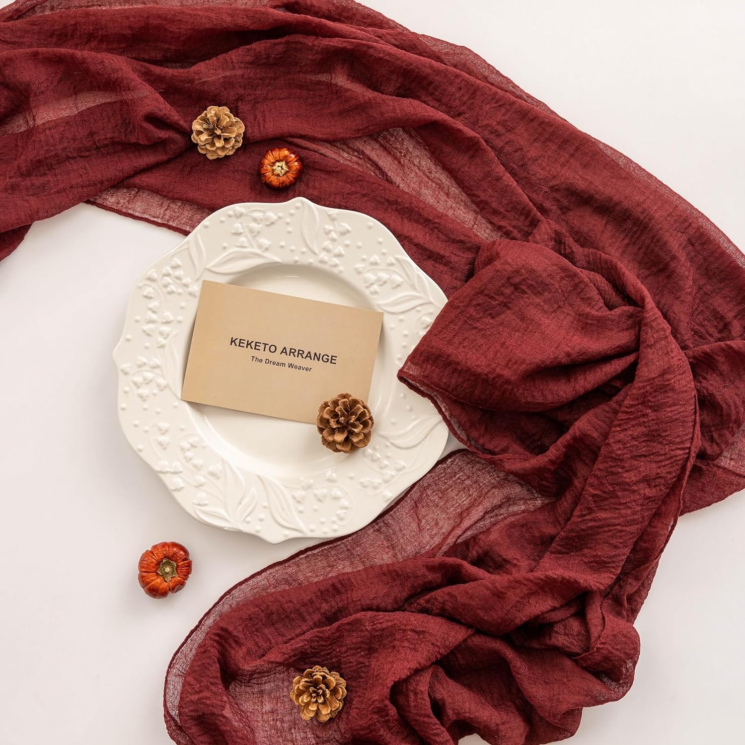 Burgundy Christmas Table Runner Decor Red Cheesecloth Gauze 120 Inch 10 FT Rustic Boho Cheese Cloth Runner for Wedding Baby Bridal Shower Party Long Sheer Home Christmas Decorations