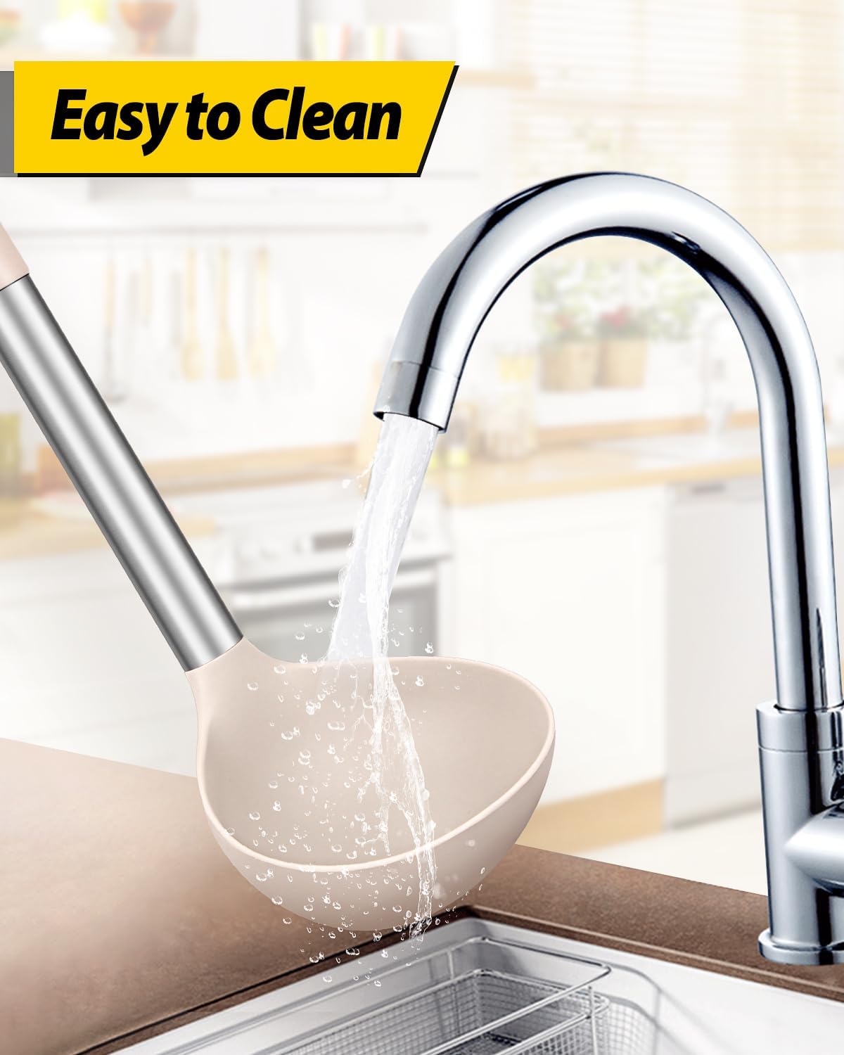 • More Safe and Healthy : Our kitchen ladle spoons are made of food-grade silicone, free of BPA;Even at high temperatures, there is no need to worry about melting or deforming;And the soft silicone head won't scratch the coating, it can better protect your pot