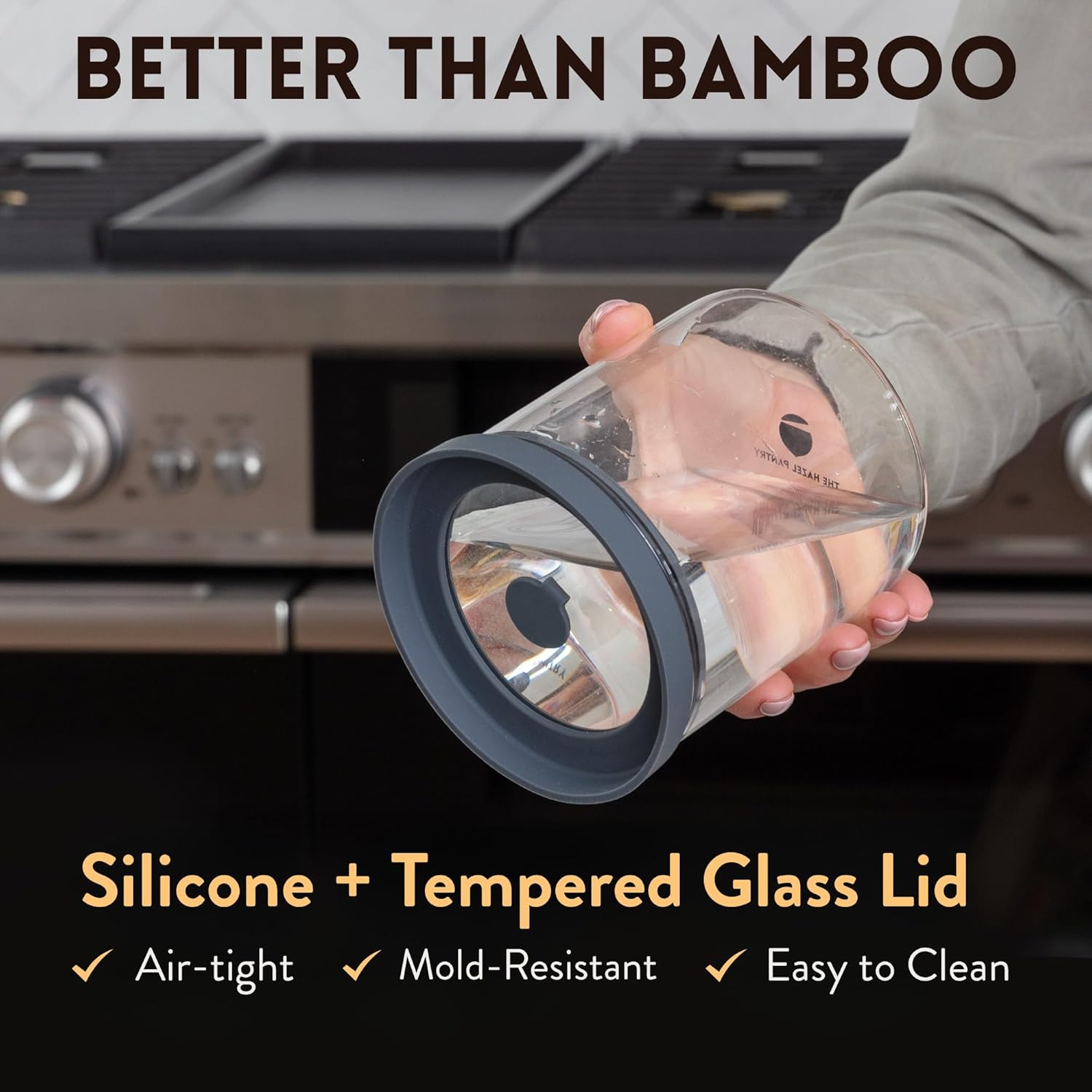 • Healthier Food Storage: Unlike plastic or bamboo, this sophisticated set of stackable borosilicate glass canisters with silicone lids are lead and cadmium free, won’t absorb odors or stains, have a high heat tolerance and are dishwasher safe