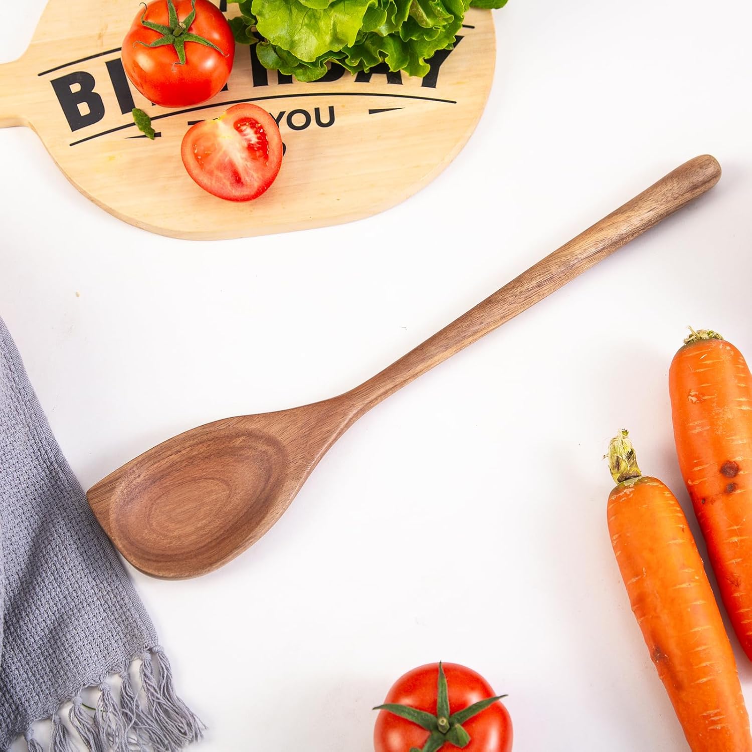 • 【17-inch Large Size】Our wooden spoon is 17 inches in length,which makes it perfect for deep pots and large bowls.It is long enough to reach the bottom of the pot or bowl,so you can stir,flip,serve,and scrape with ease. The spoon is also lightweight,making it easy to handle.