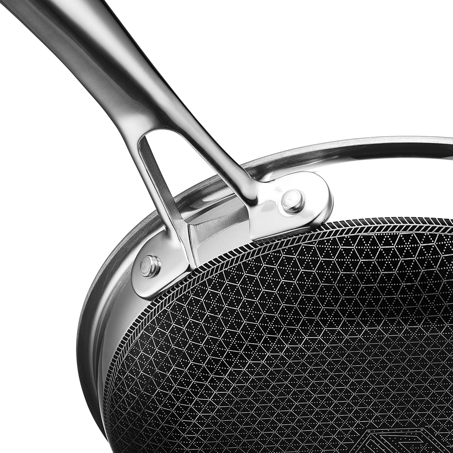 • Tri-ply construction with an aluminum core for quicker even heating, it’s safe to use on any home cooktop or stovetop, including induction. HexClad is metal utensil-safe, dishwasher-friendly, and oven-safe up to 900°F. (Tempered glass lids are oven-safe up to 400°F, while stainless steel lids are oven-safe up to 900°F.)