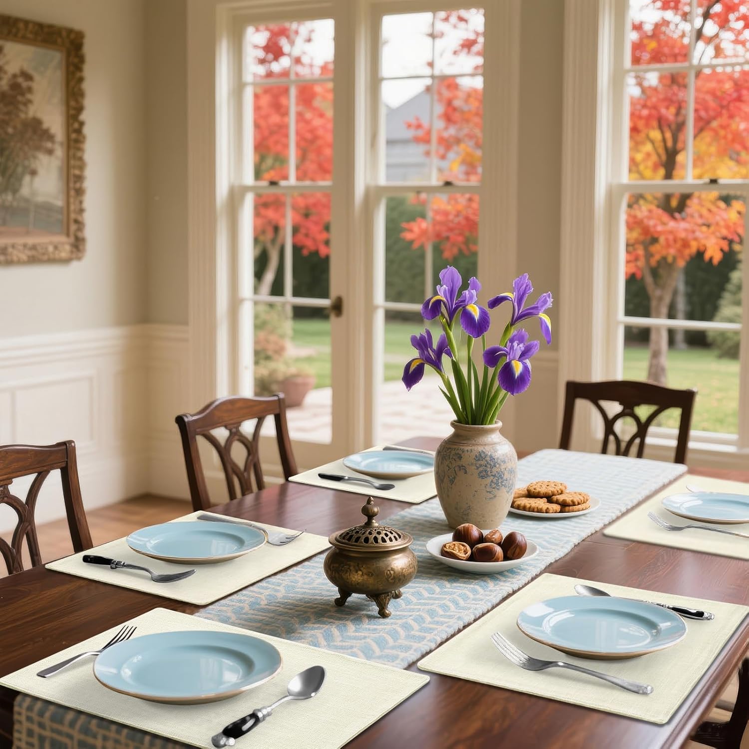 • √ MATERIALS: Our placemats are made of linen and cotton, durability and washable, liquid can go through placemats, anti-heat and anti-stain, protecting your table from all kinds of debris and stains