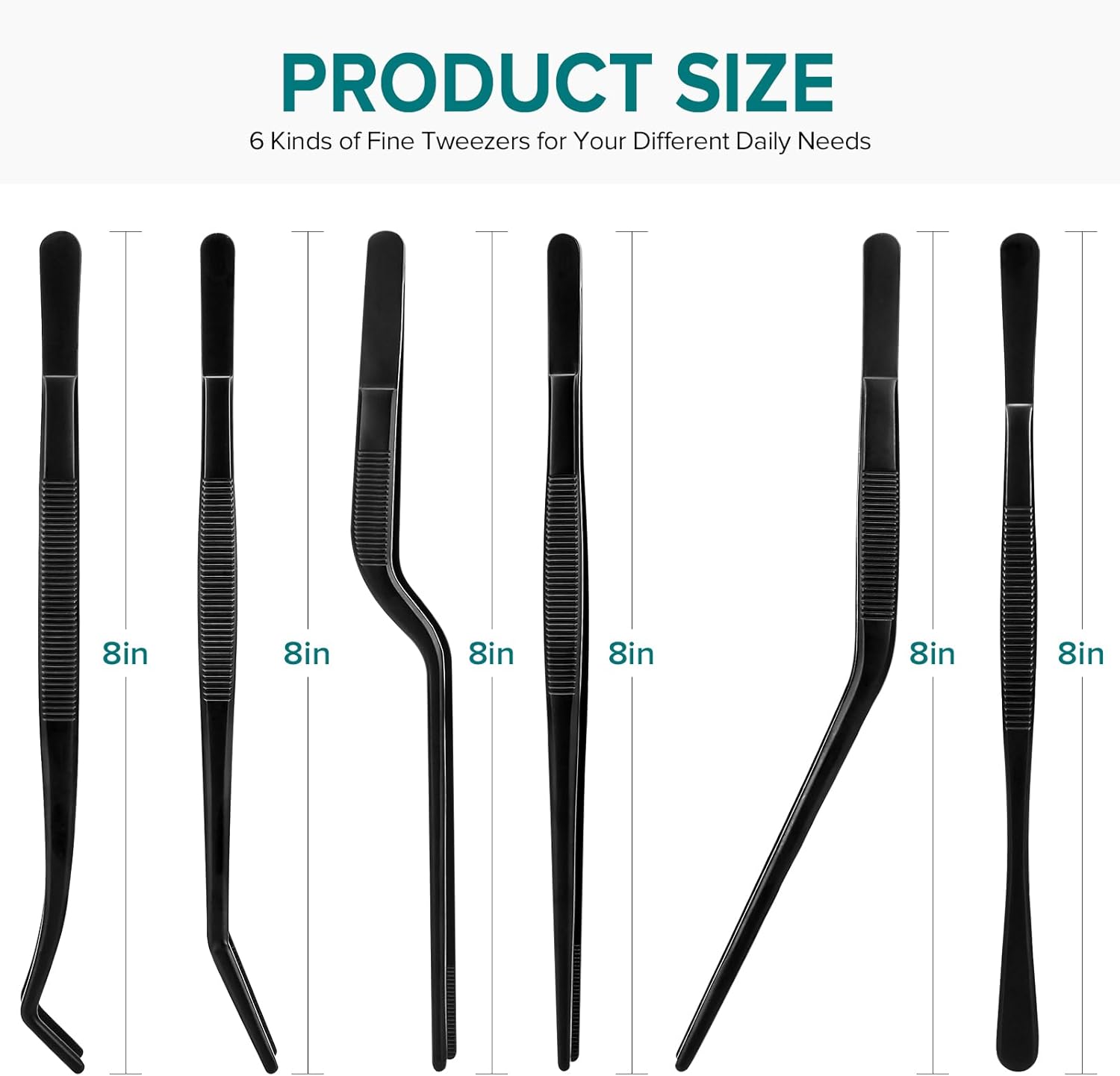 Kitchen Tweezer Tongs Set,6 Pcs Kitchen Tweezers,8" Cooking Tweezers Set,Stainless-Steel Food Chef Culinary Tweezers Tongs for Baking Decorating Feeding Plating,Black
