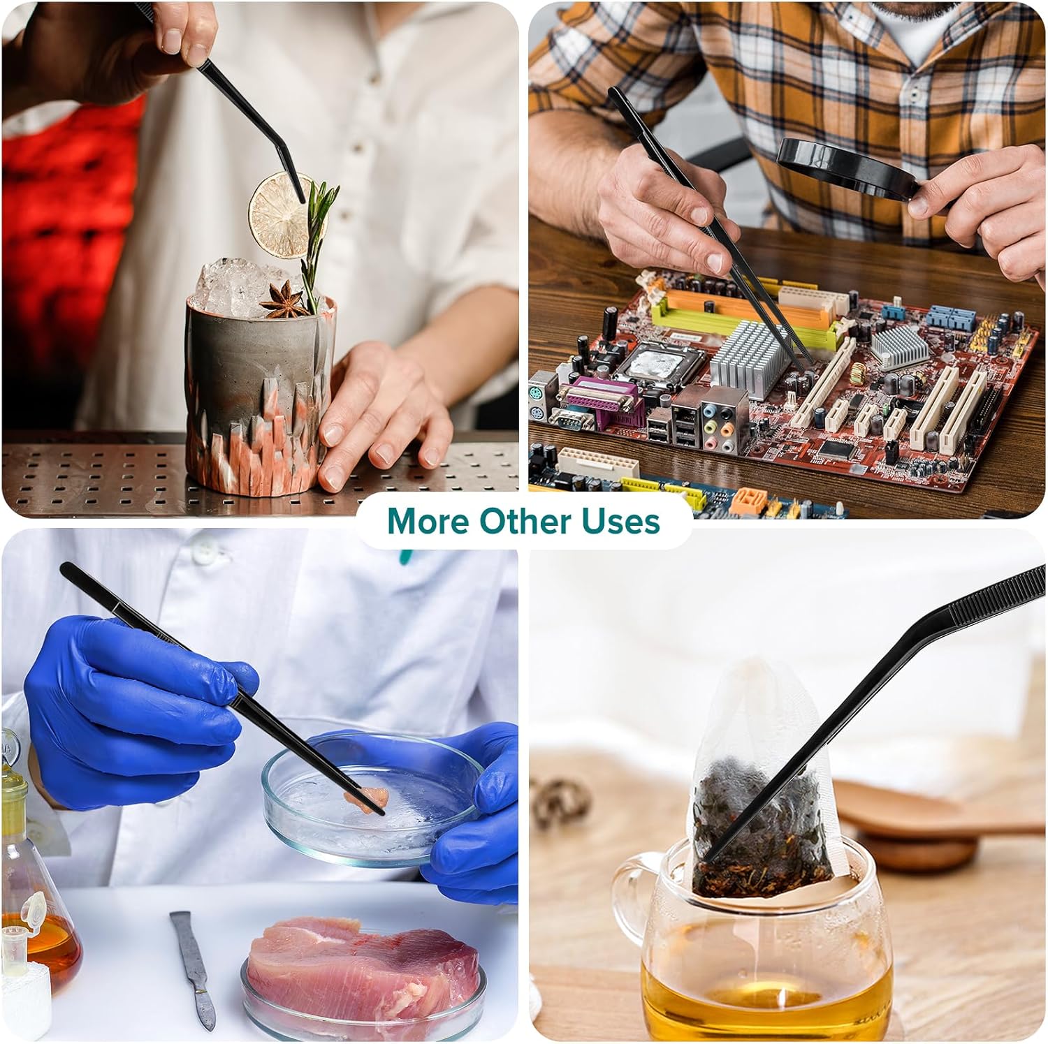 • WIDE APPLICATION: This tweezer tongs is great for kitchen, restaurants,buffets,weddings, parties.Not only for baking, grilling turning and lifting meat, fish, crab, chicken, turkey, burger, hotdog, corn, vegetable salad and taco; also suitable as gardening, aquarium plant tools. Perfect for cooking, roasting, grabbing small objects, pharmacy purpose, pulling out hair, electrical repairing, crafting and feeding small animals, cleaning a garden or fish tank, plant maintenance