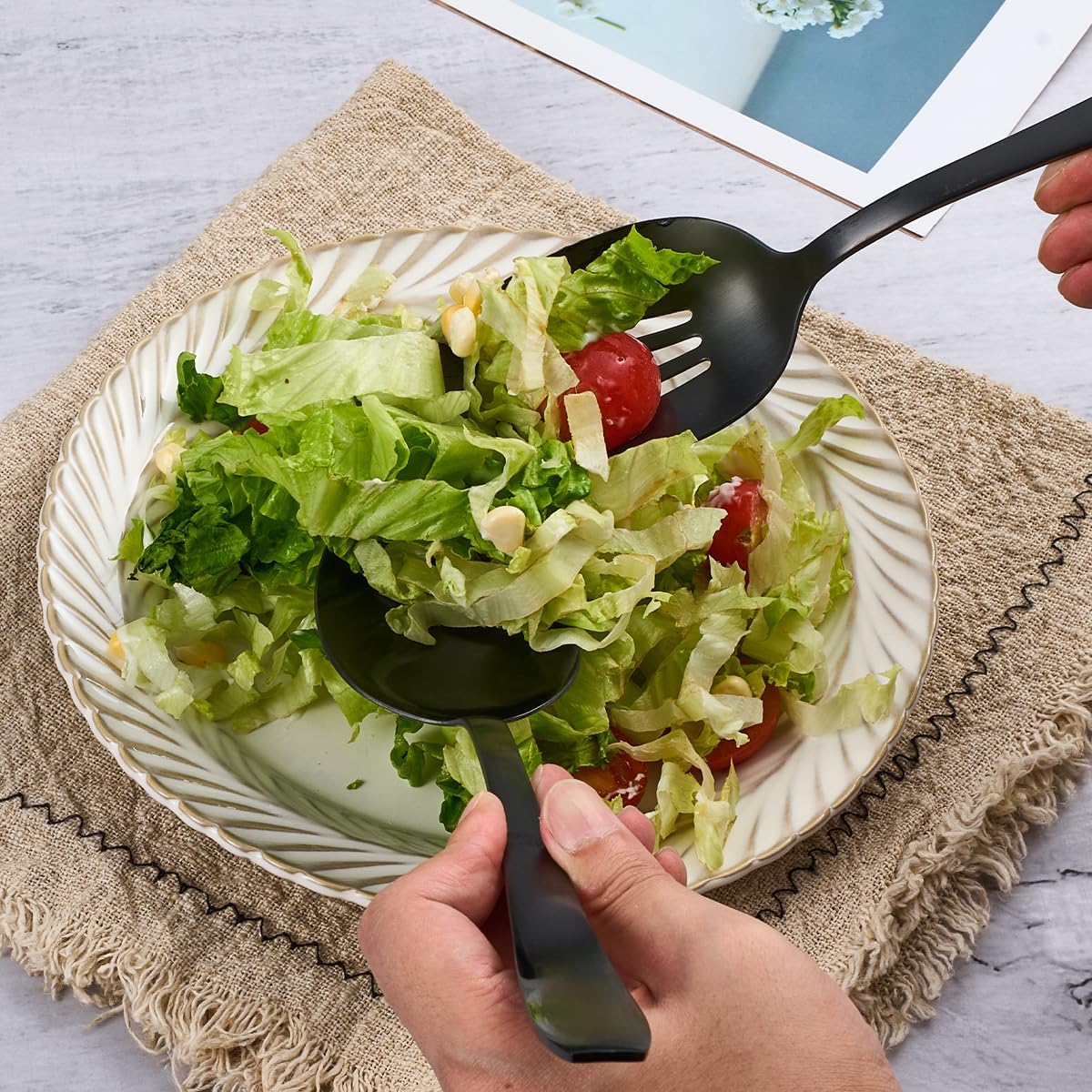 • Stylish and Ergonomic: The large serving utensils set feature a stylish design that enhances the overall aesthetics of your table setting. 10.6-inch Length serving set are designed with ergonomic handles for a comfortable grip and easy handling.
