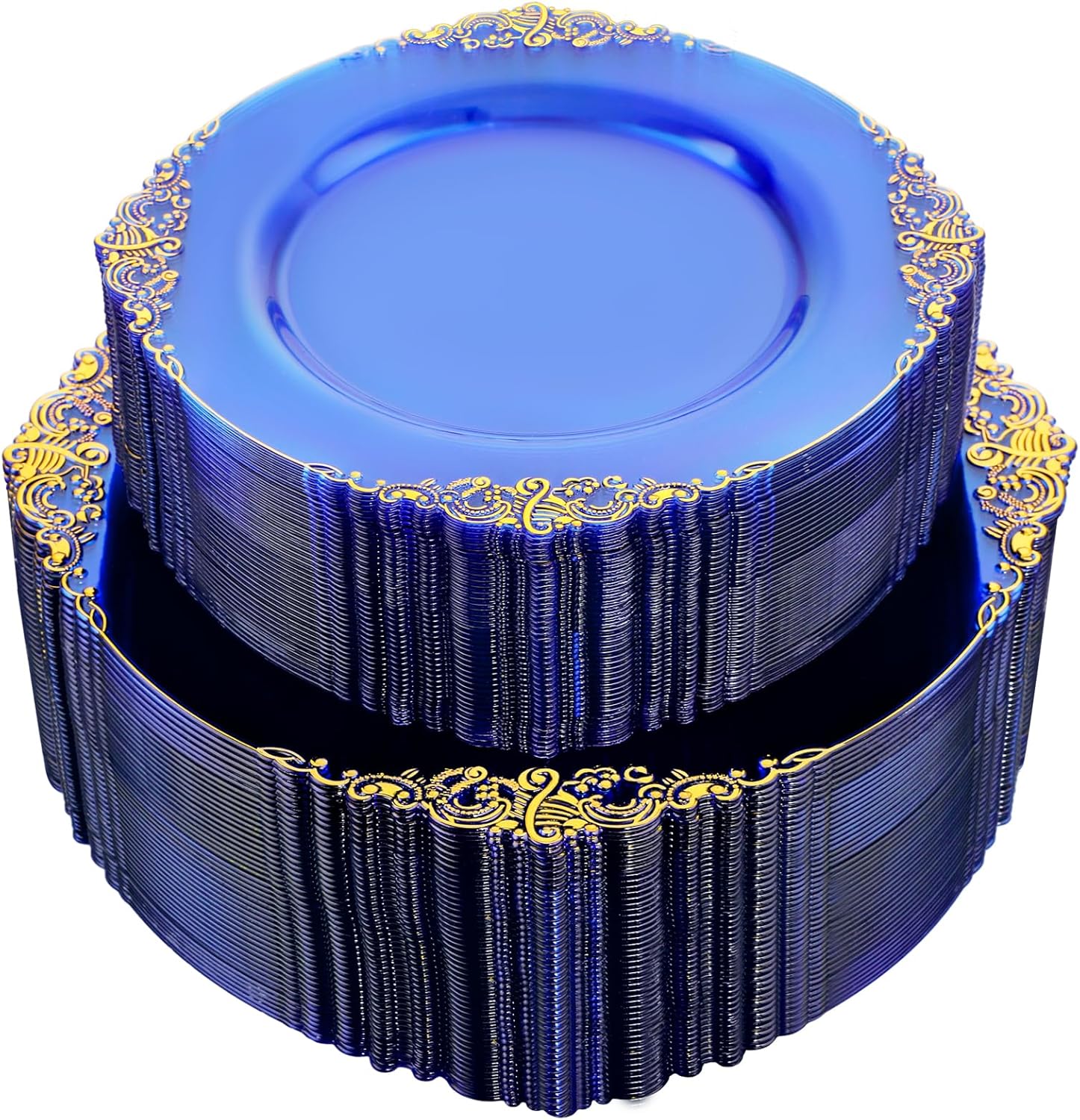 • Great Value: The blue and gold plates contains 51 plastic dinner plates 10.25inch and 51 disposable dessert plates 7.5inch, which are great value and can provide you with everything you need to host a memorable occasion.