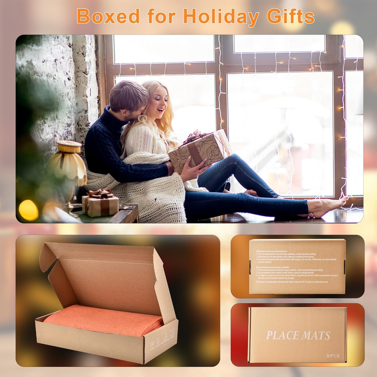 SLKQG Thanksgiving Linen-Look Fabric Placemats Set of 6 - Heat Resistant & Machine Washable Table Mats for Holiday Dining, Double-Layered for Family Gatherings - Indoor Outdoor Use (6, Orange)