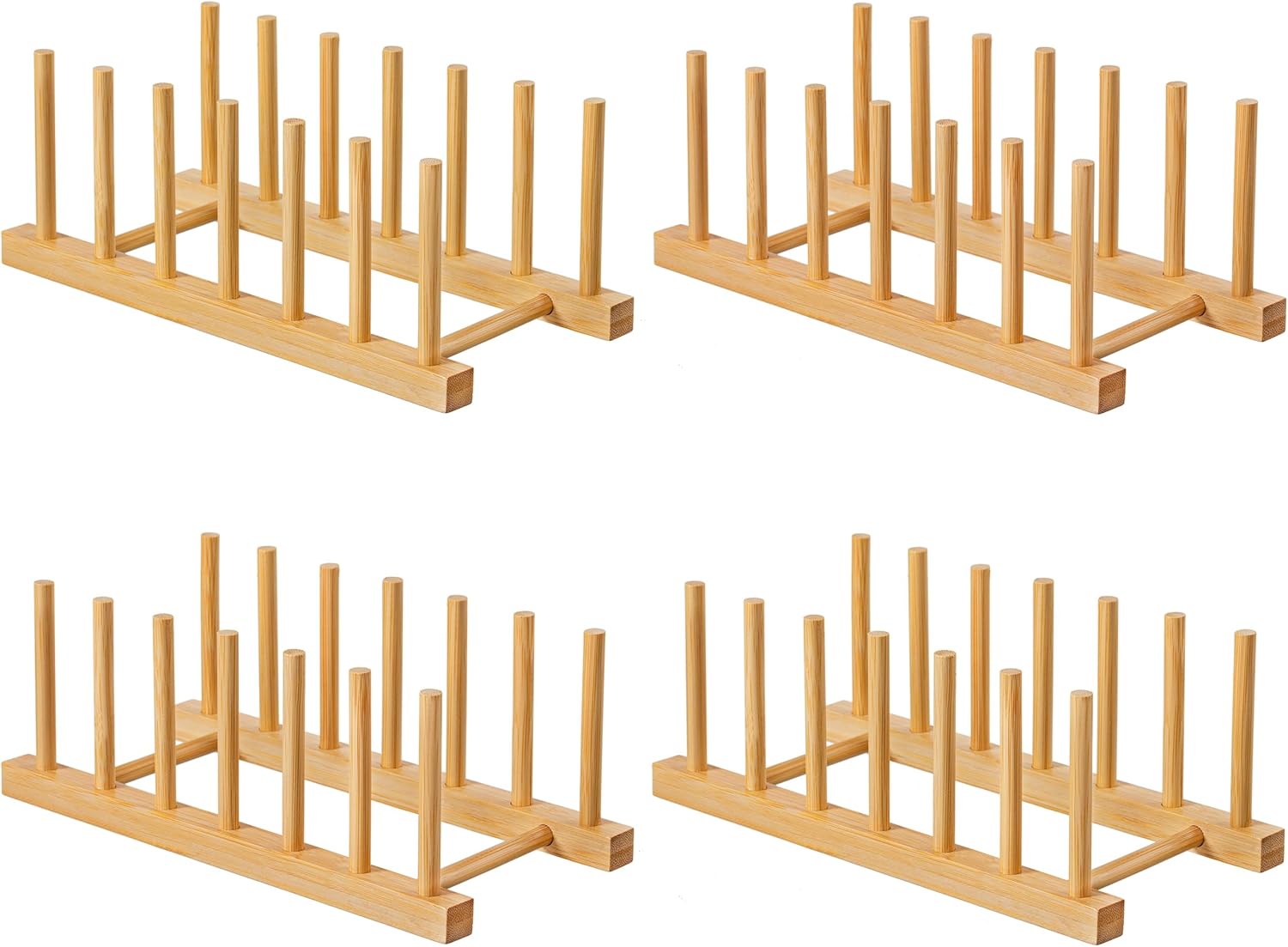 HBlife 4pcs Bamboo Dish Plate Bowl Cup Book Pot Lid Cutting Board Drying Rack Stand Drainer Storage Holder Organizer Kitchen Cabinet(Keep Dry)