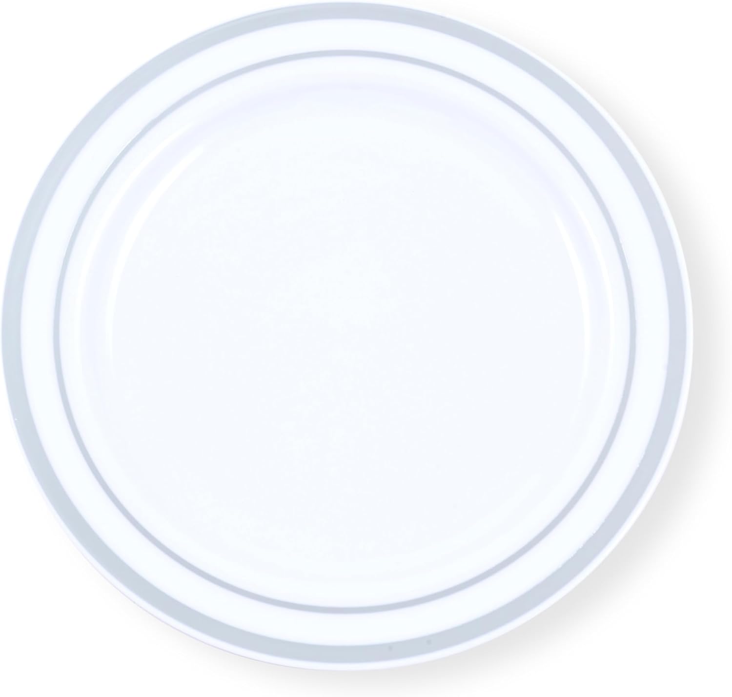 120-Piece Dinner Plastic Plates Set Premium 120 Dinner Plates, Disposable Plates for Party - White Plastic Wedding Plates with Silver Rim