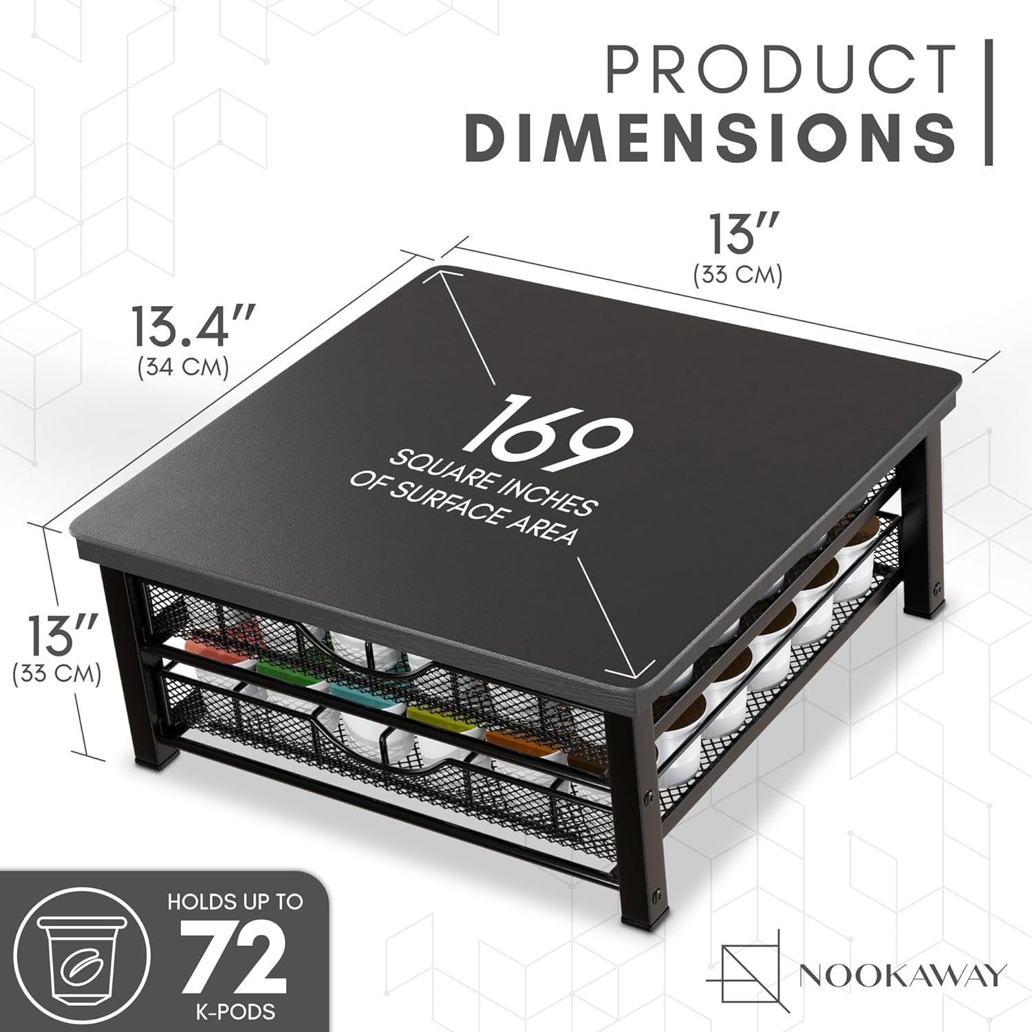 • TRANSFORM YOUR COFFEE CORNER with the Nookaway Keurig Coffee Pod Organizer. This K Pod holder features an elegant black wood top and black metal frame, turning a simple coffee corner into a chic and sophisticated area