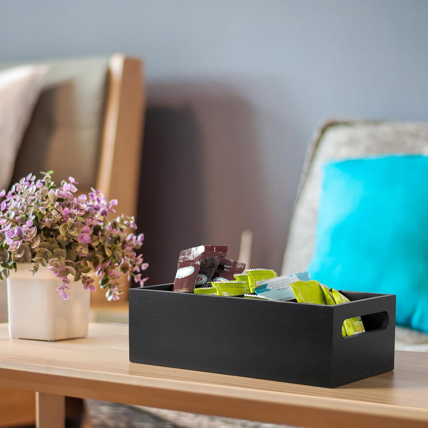 DRASTAR Pantry Organization and Storage Bins, Seasoning Packet Organizer with Removable Dividers,Wooden Storage Caddy for Kitchen, Pantry, Cabinet, Countertop, Black