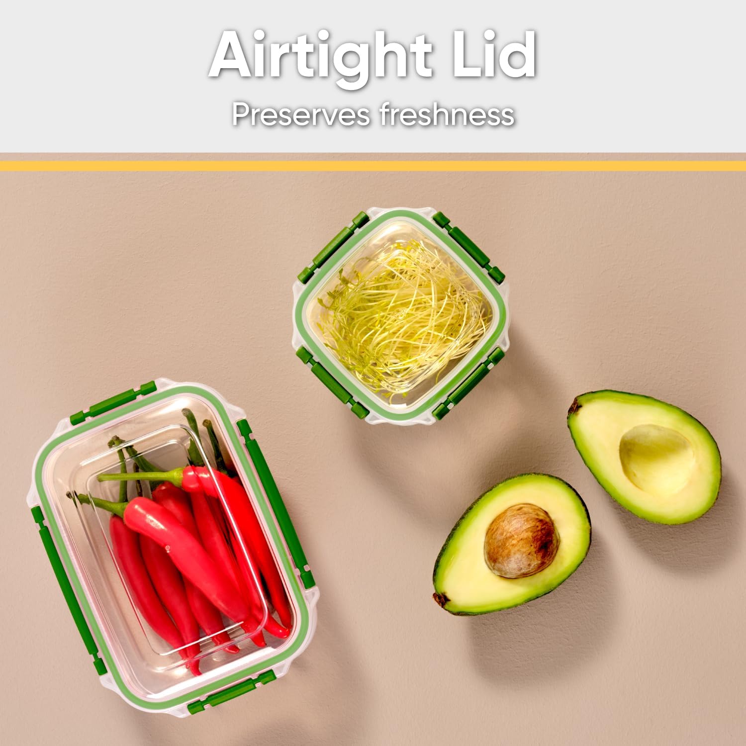 • PRESERVE FOOD FRESHNESS: Its air-tight design locks in freshness and prevents the seepage of liquids, making it ideal for storing food and being perfect for on-the-go. The four-sided locking lids create an airtight seal which ensures a secure and leak-proof seal. Meet all your family's food storage needs carry these airtight food storage containers to school, to your office, or in a lunch bag without the fear of spillage and the food going stale.