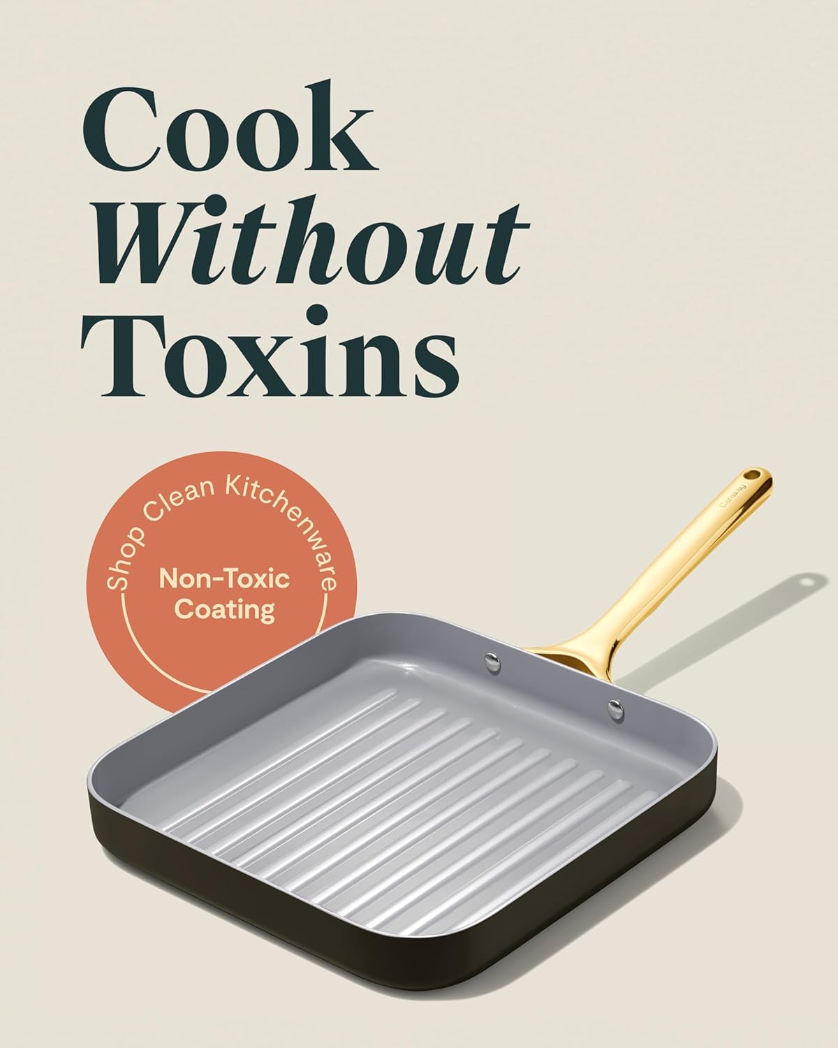 Caraway Square Grill Pan - 11” Grill Pan - Non-Stick Ceramic Coated - Non Toxic, PTFE & PFOA Free - Oven Safe & Compatible with All Stovetops - Black