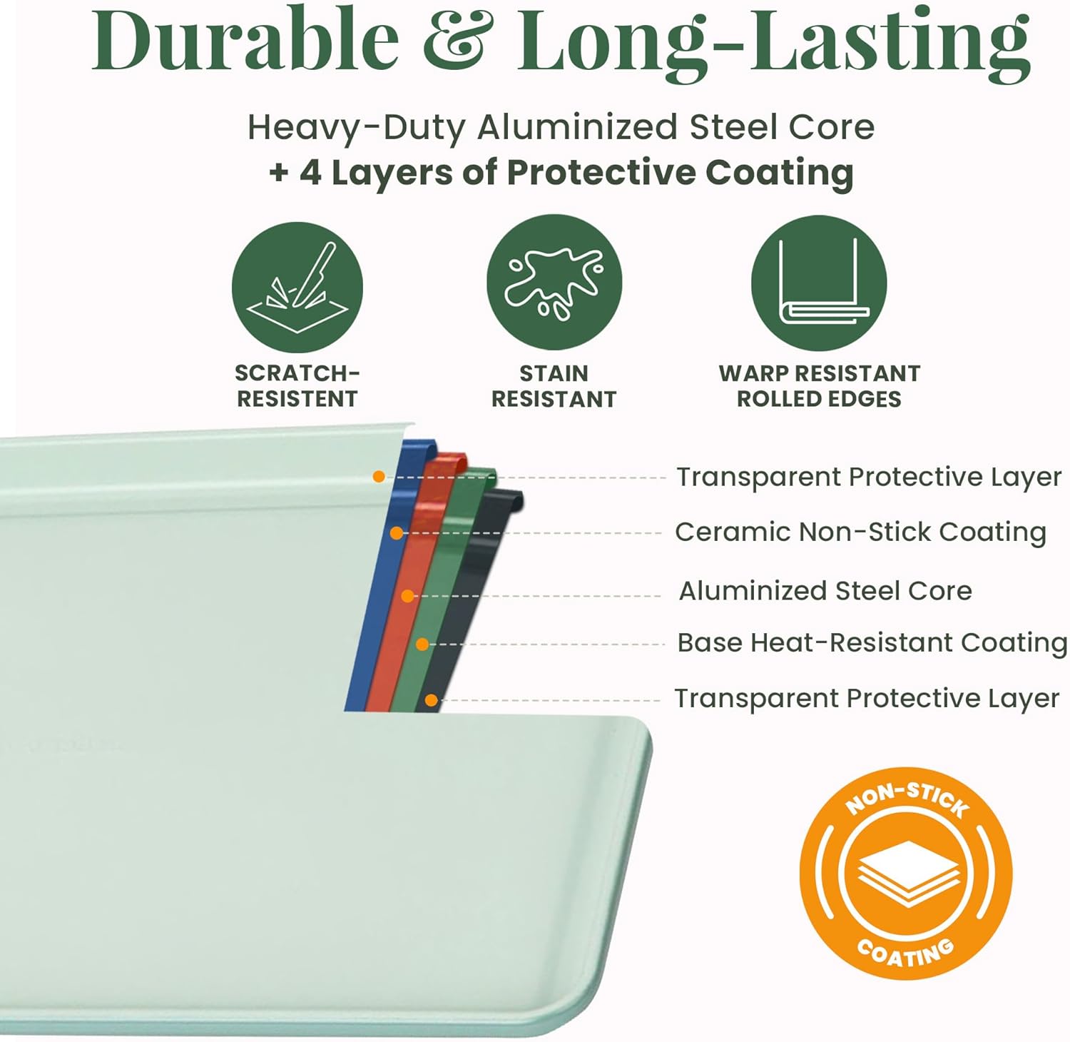 • Durable 4-Layer Construction: Made from heavy-gauge aluminized steel with five protective layers, these baking essentials resist warping and endures repeated use, delivering reliable performance and lasting quality for years of baking enjoyment.