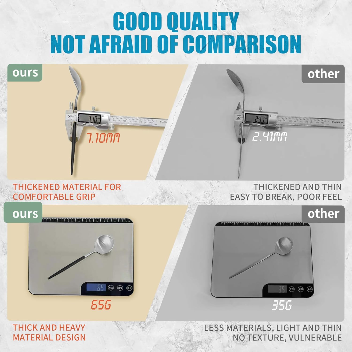 • DURABLE AND SAFE : Crafted from premium stainless steel. Durable and healthy for everyday use. The heavy-duty solid handle is not easy to deform, which is easy to compare with another cheap cutlery set