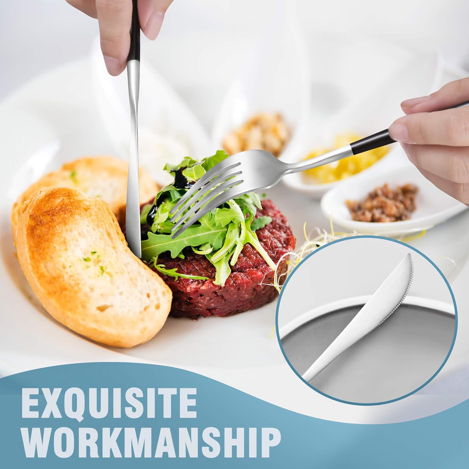 • CARE GUIDELINES : The flatware set is both hand-washable and dishwasher-safe. Please avoid using acidic detergents, and be sure to dry it after cleaning