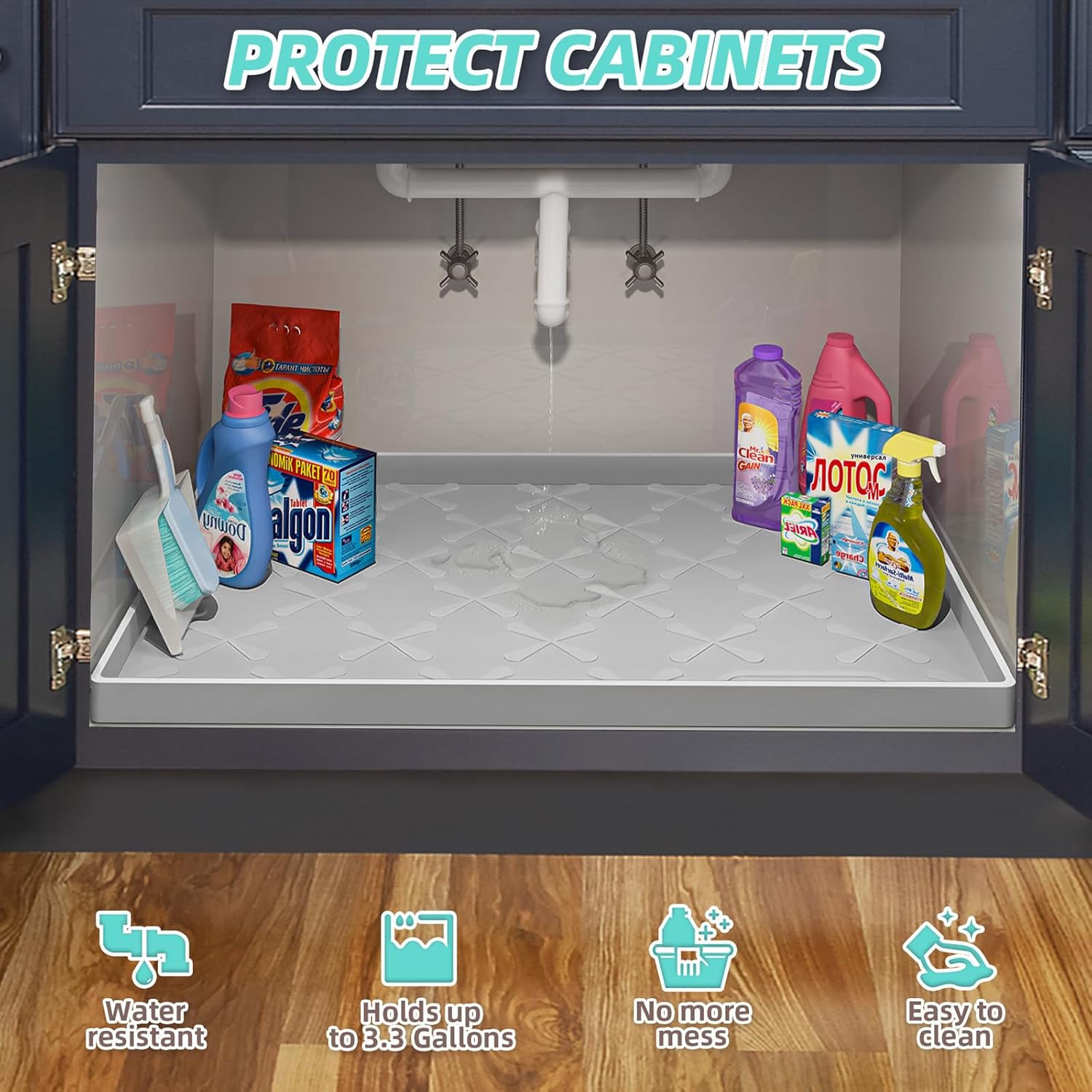 SIKADEER 28" x 22" Under Sink Mat Waterproof, Silicone Mat Kitchen Drawer Shelf and Cabinet Liner, Sink Protector for Kitchen Organizers and Storage, Boot Tray Pet Food Mats