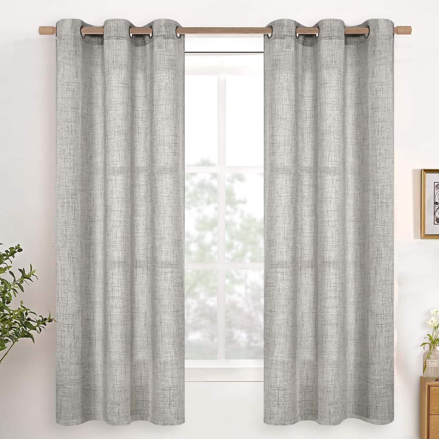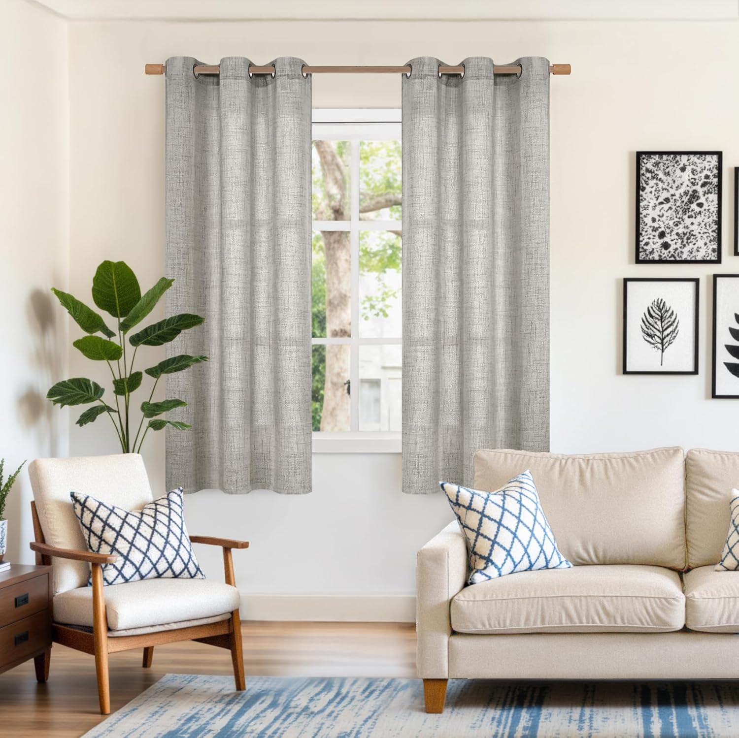 • Package: The package includes set of 2 dark grey linen curtain panels. Each linen textured curtain measure 42 inch wide and 63 inch length. Each light filter curtain has 6 vintage bronze grommets with 1.6-inch inner diameter, fit well with most rods. Easy to hang, and slide smoothly.