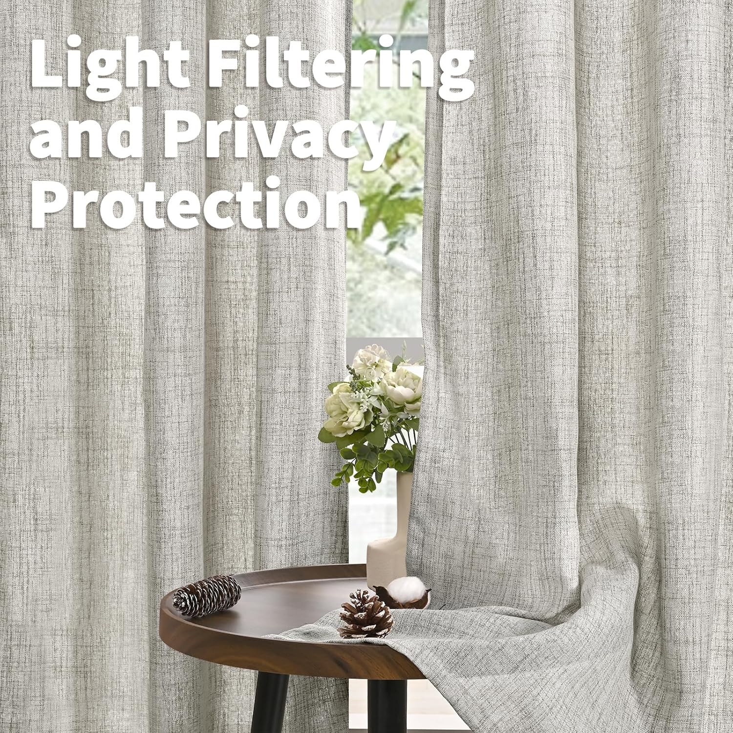• Textured Linen Look: Our faux linen curtains are made from linen blend fabric with a premium soft touch, excellent drape and wrinkle-free. Natural and rustic look that adds warmth and texture to any room, suitable for the living room, bedroom, farmhouse, dining room, office and any style space.