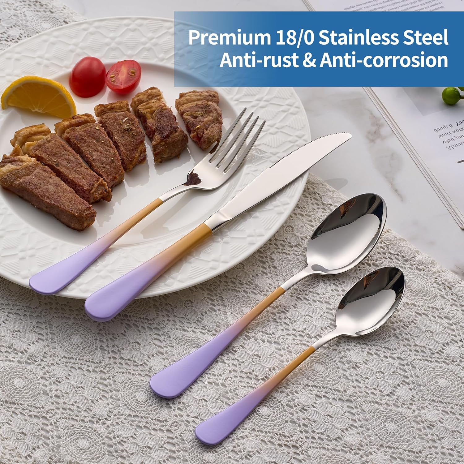 20-Piece Purple&Orange Silverware Set,18/0 Stainless Steel Colorful Handle Flatware Set, Service for 4, Modern Cutlery Set Includes Dinner Knives Forks Spoons, Mirror Polished,Dishwasher Safe