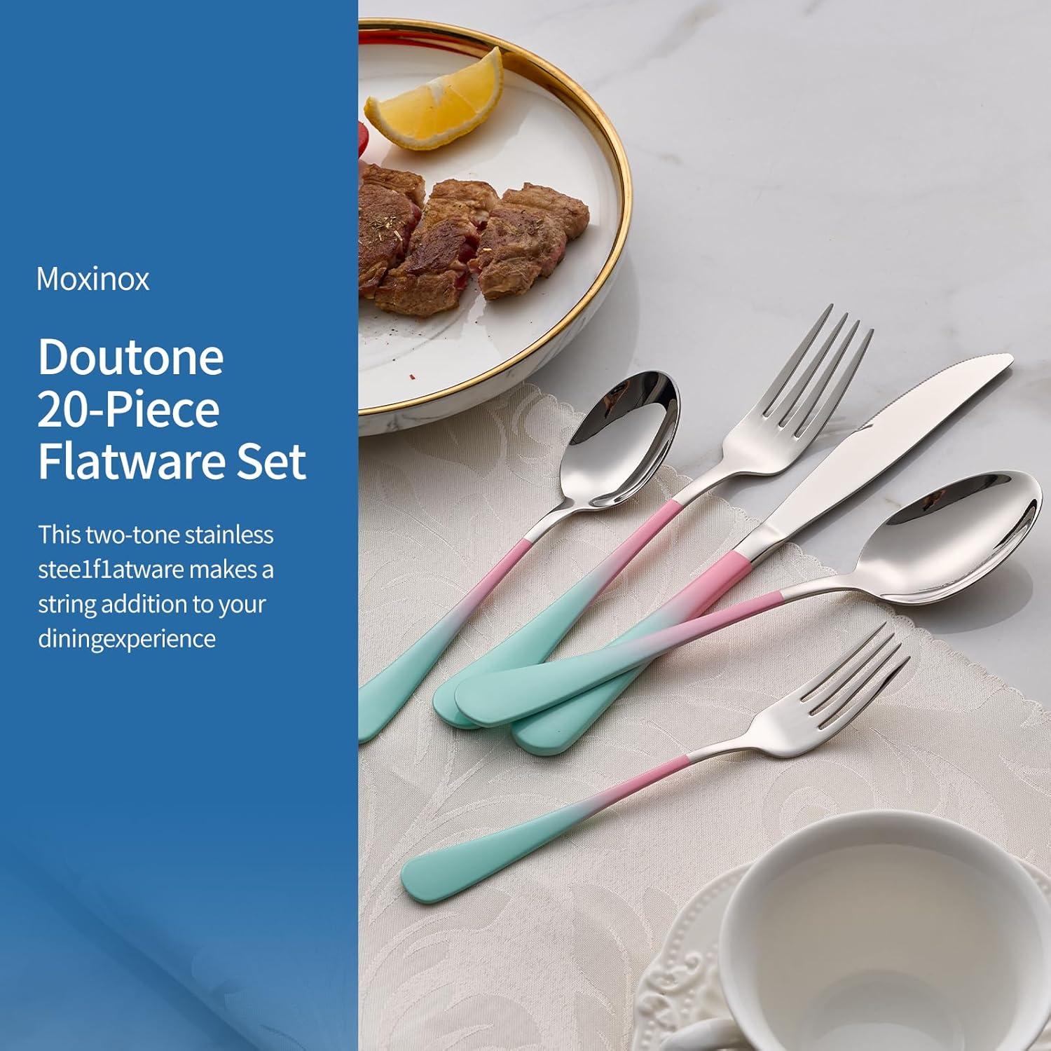 20-Piece pink & green Silverware Set,18/0 Stainless Steel Colorful Handle Flatware Set,Service for 4,Modern Cutlery Set Includes Dinner Knives Forks Spoons, Mirror Polished,Dishwasher Safe