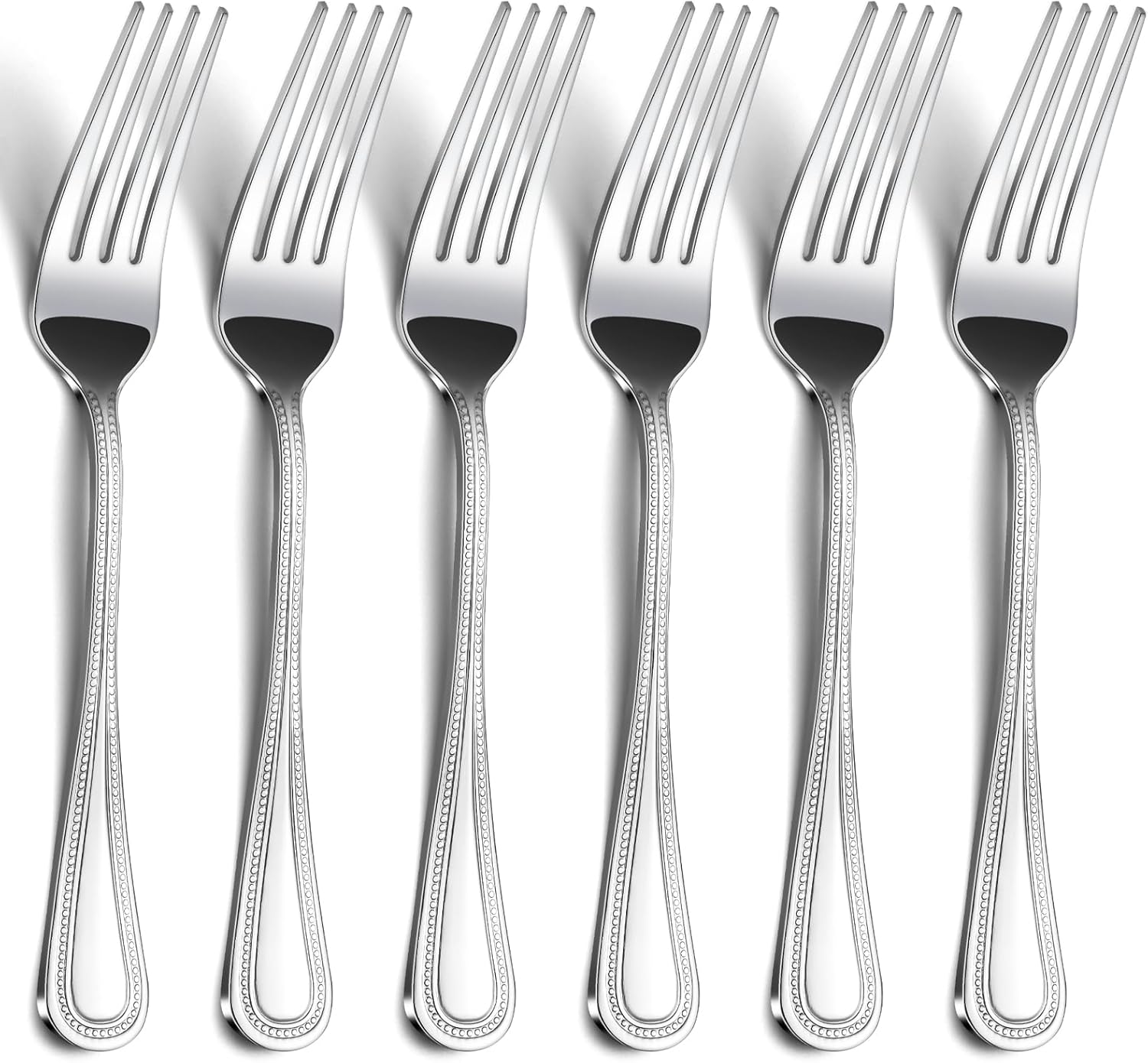 24-Piece Dinner Fork Set, 8-Inch Silverware, Stainless Steel, Elegant Pearl Dot Handle, Dishwasher Safe