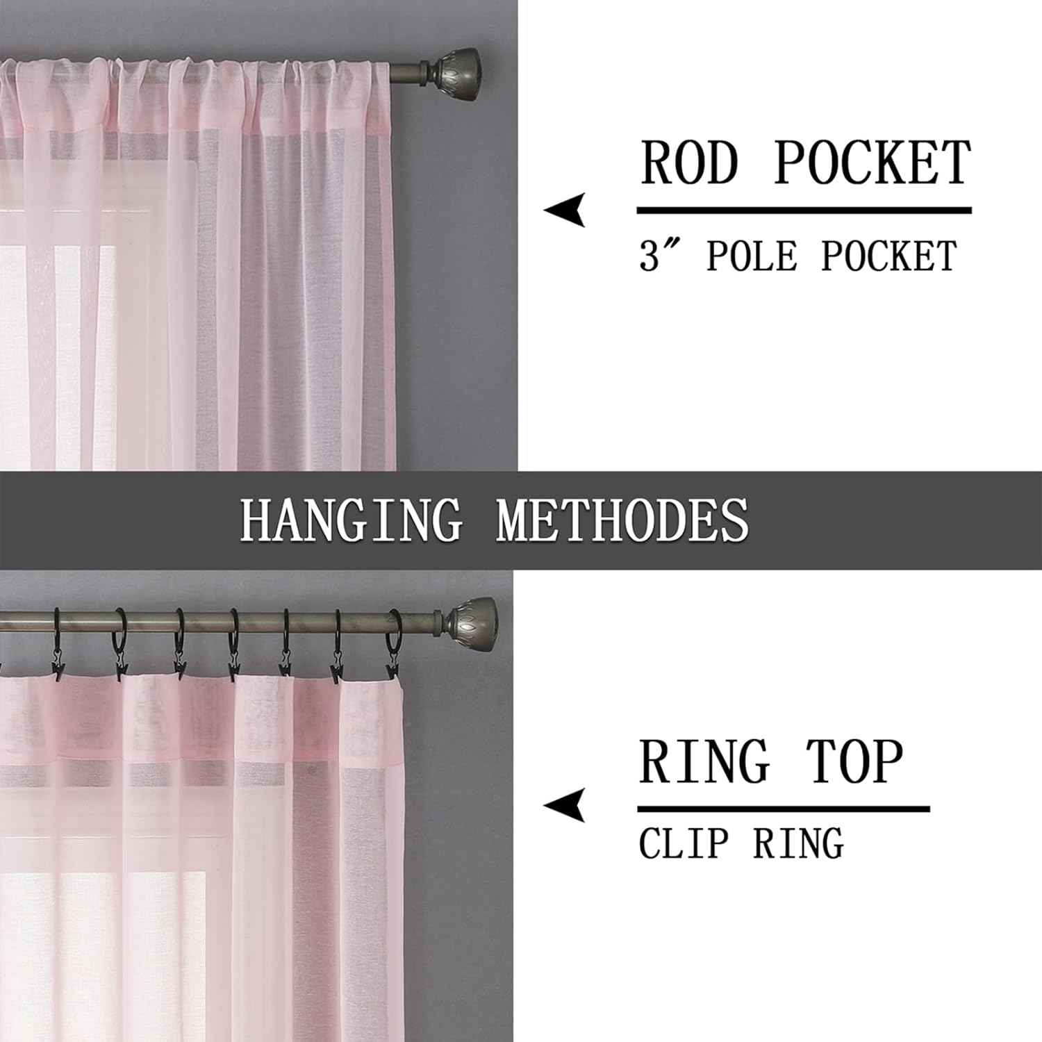 • Light Filtering: The linen look pink sheer curtains can allow the right amount of natural light through to bring your room a hazy and softer vision, keep you away from someone’s glance from outside and provide you some privacy.
