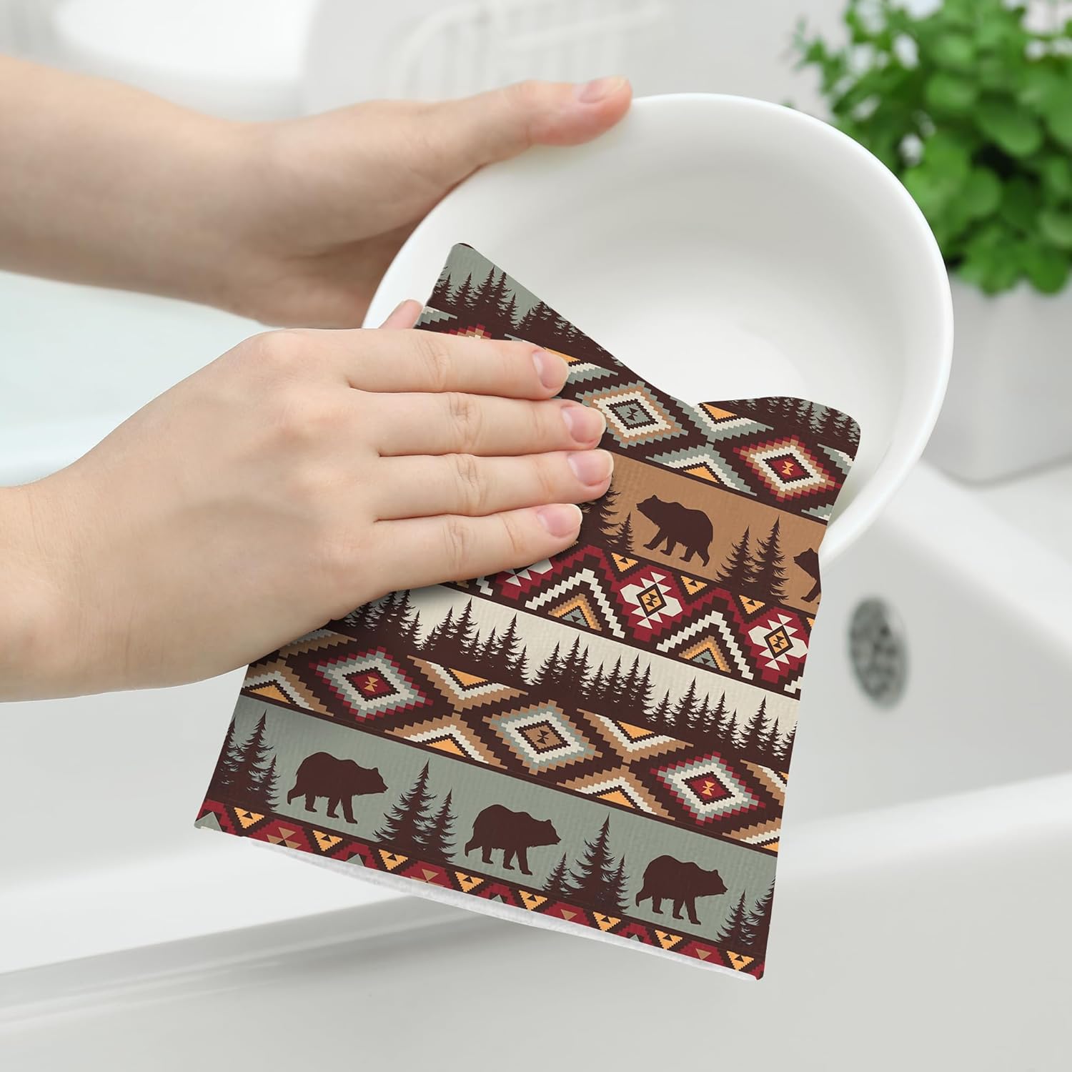 Vintage Rustic Dish Towels for Kitchen Drying Set of 2, Soft Absorbent Bear Mountain Kitchen Towels Tea Towels, Country Cabin Themed Hand Towels for Farmhouse Home Decorations 16x24 Inch