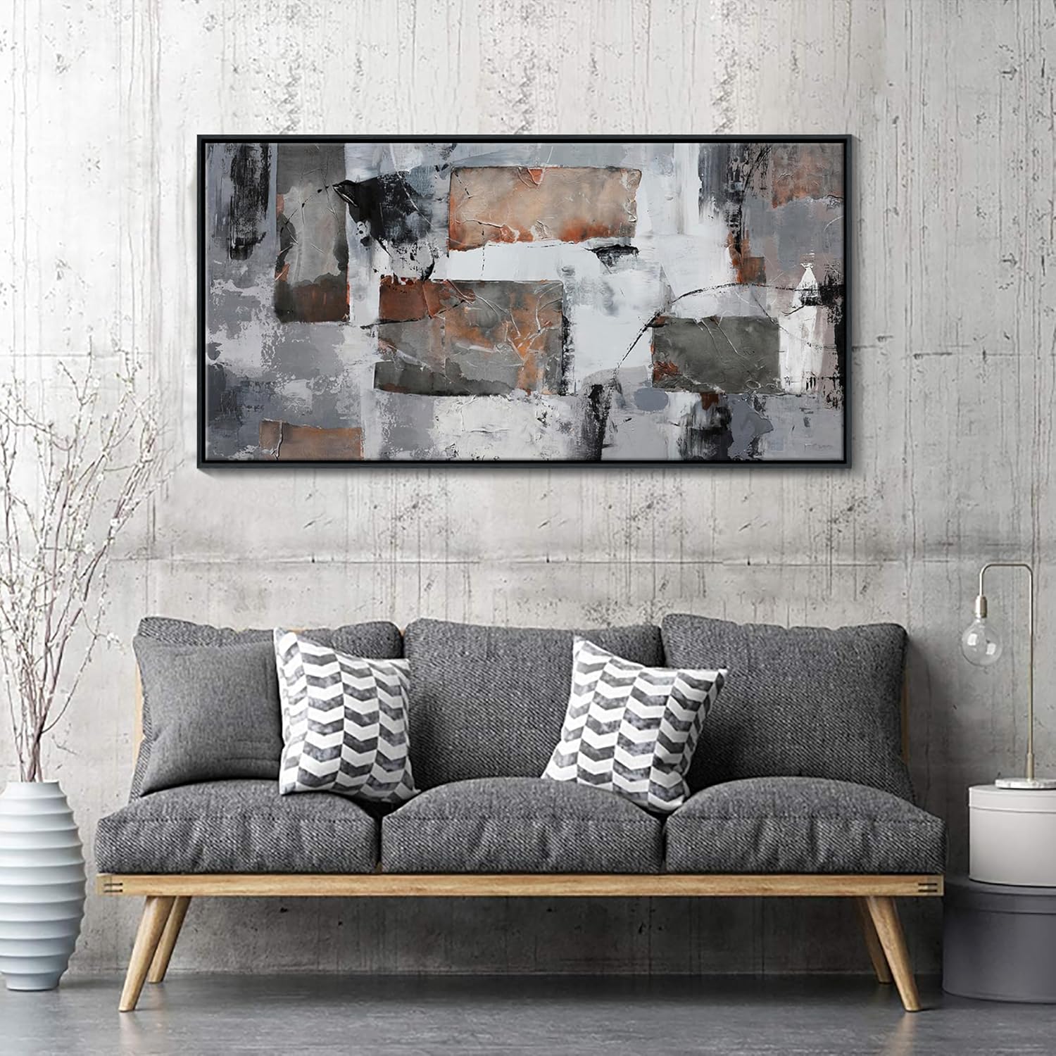 Framed Abstract Canvas Wall Art, Large Modern Artwork - Ideal for Living Room, Bedroom, Office Decor - Gray and Black Aesthetic Room Wall Decorations 24×48IN