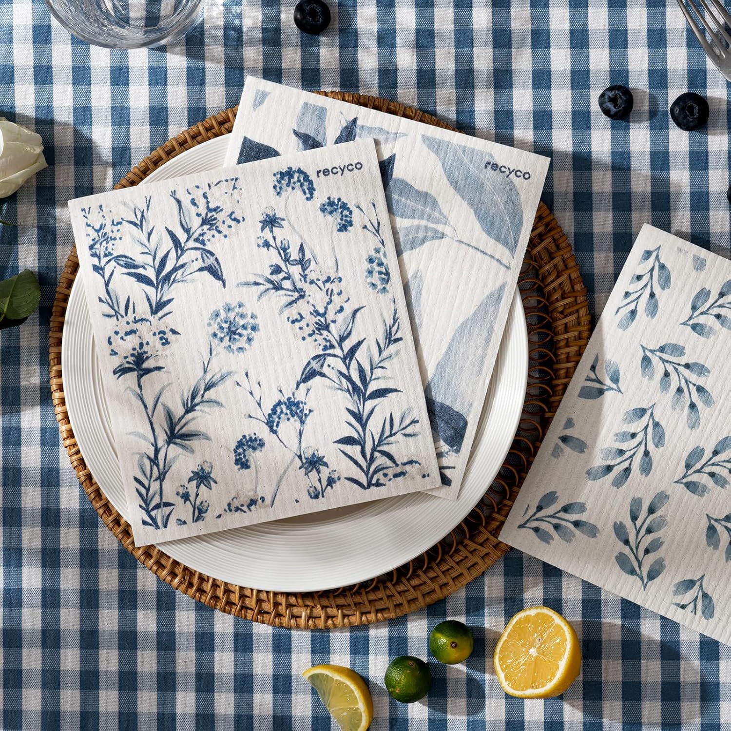 RECYCO Swedish Dishcloths for Kitchen | 6 Pack Foggy Blue Washable Dish Rags | Cellulose Reusable Cleaning Paper Towels | Absorbent Counter Dish Cloth Sponge Kitchen Wipes, 8" L x 7" W