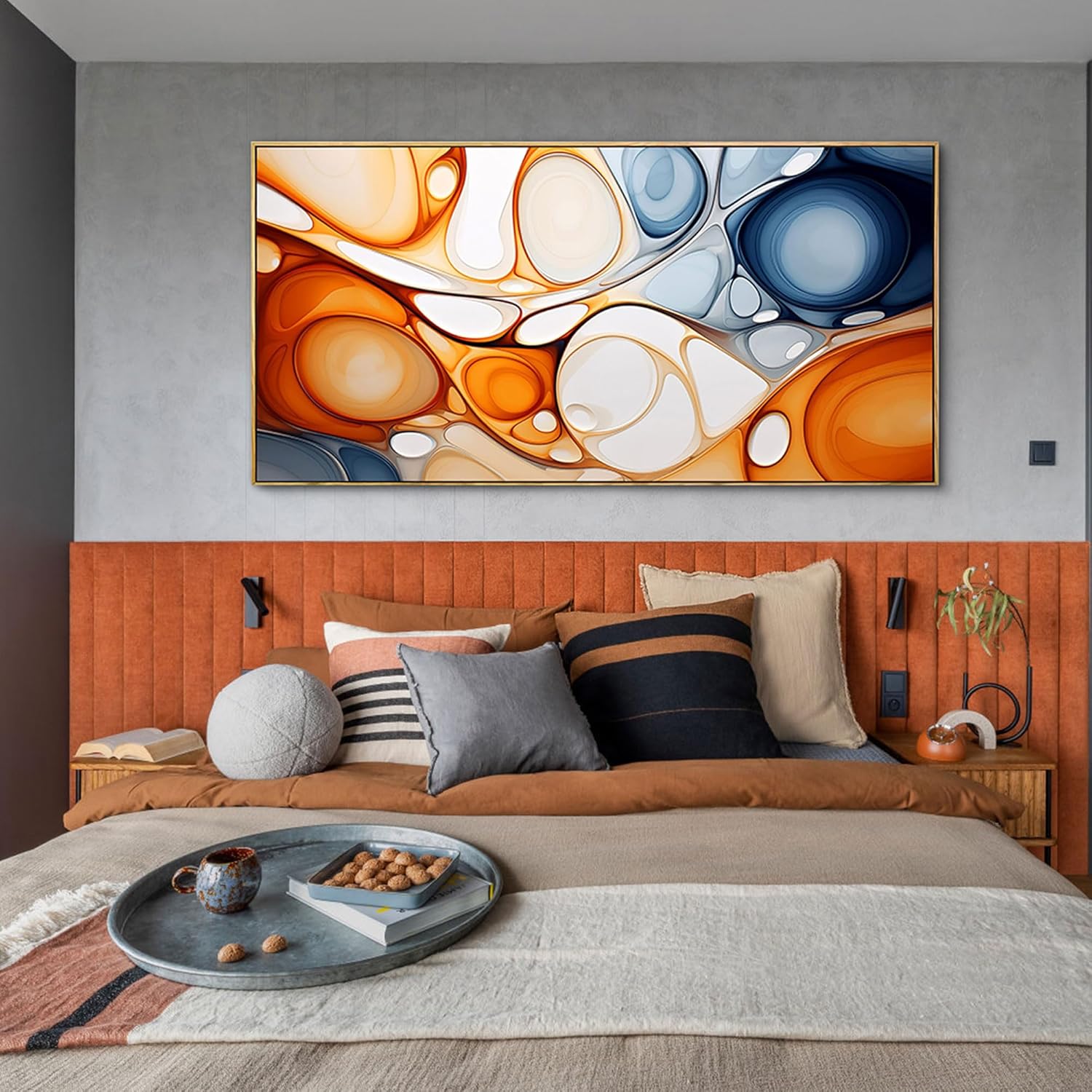 KLAKLA Orange and Blue Abstract Wall Art - Modern Picture Artwork for Wall Decor - Frame Wall Art for Living Room Office Bedroom