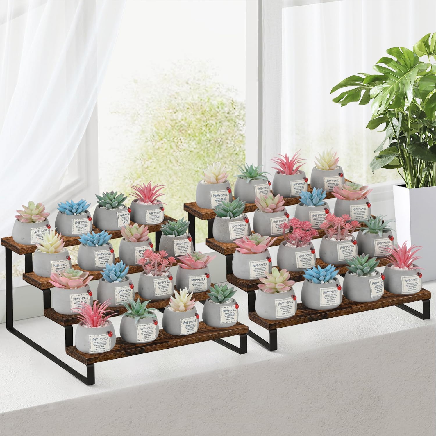 • Convenient Design: The stepped design makes efficient use of your counter space. This wooden display riser is a great idea for displaying toy figurines in cabinets, celebrating party desserts, and cosmetics on the dresser. The raised tiers help to create an eye-catching feature for your items.